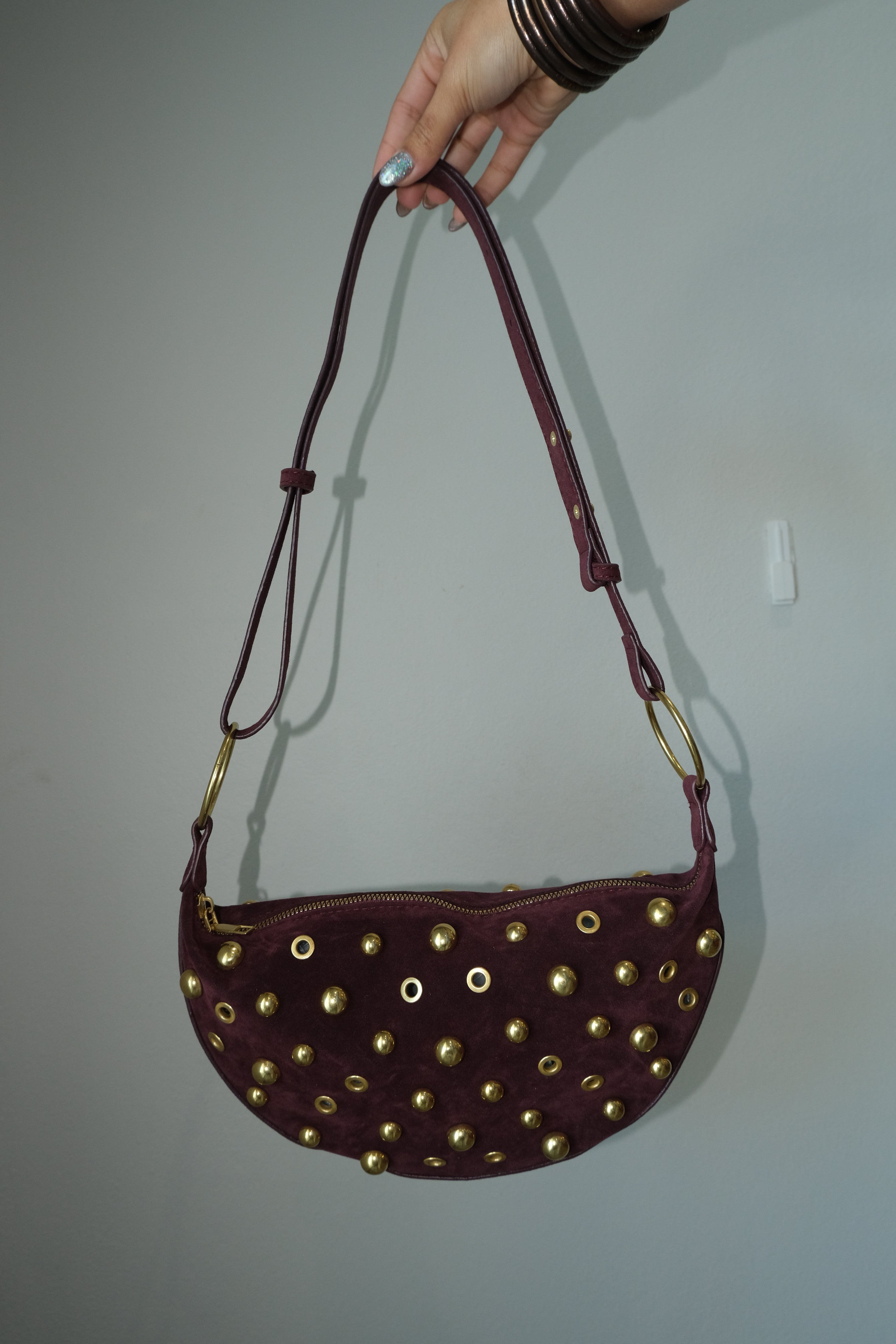 Iona Gold Studded Suede Shoulder