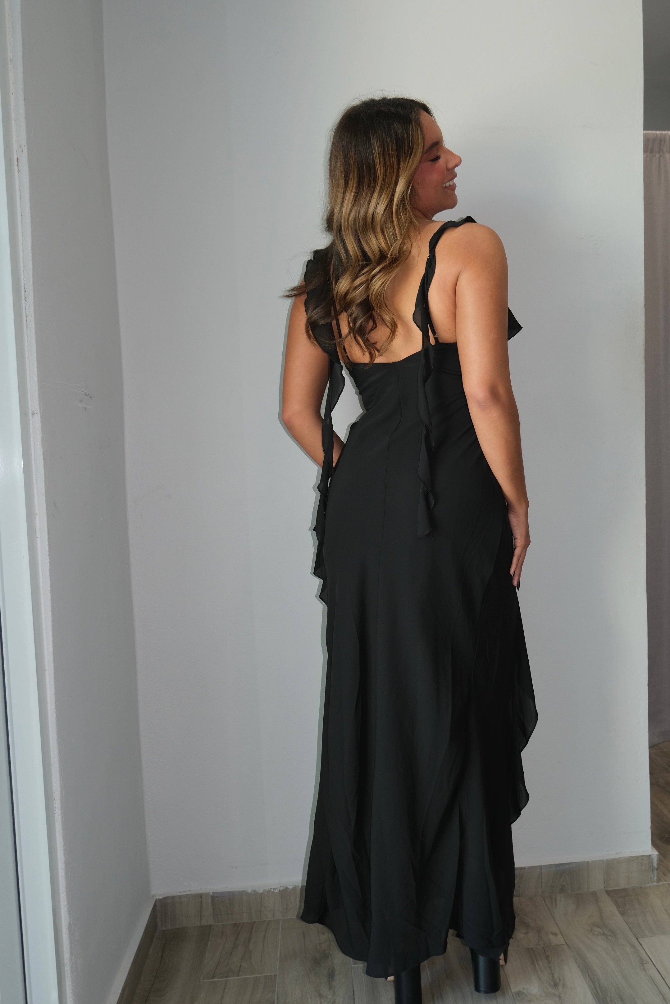 Callie Ruffle Slit Dress