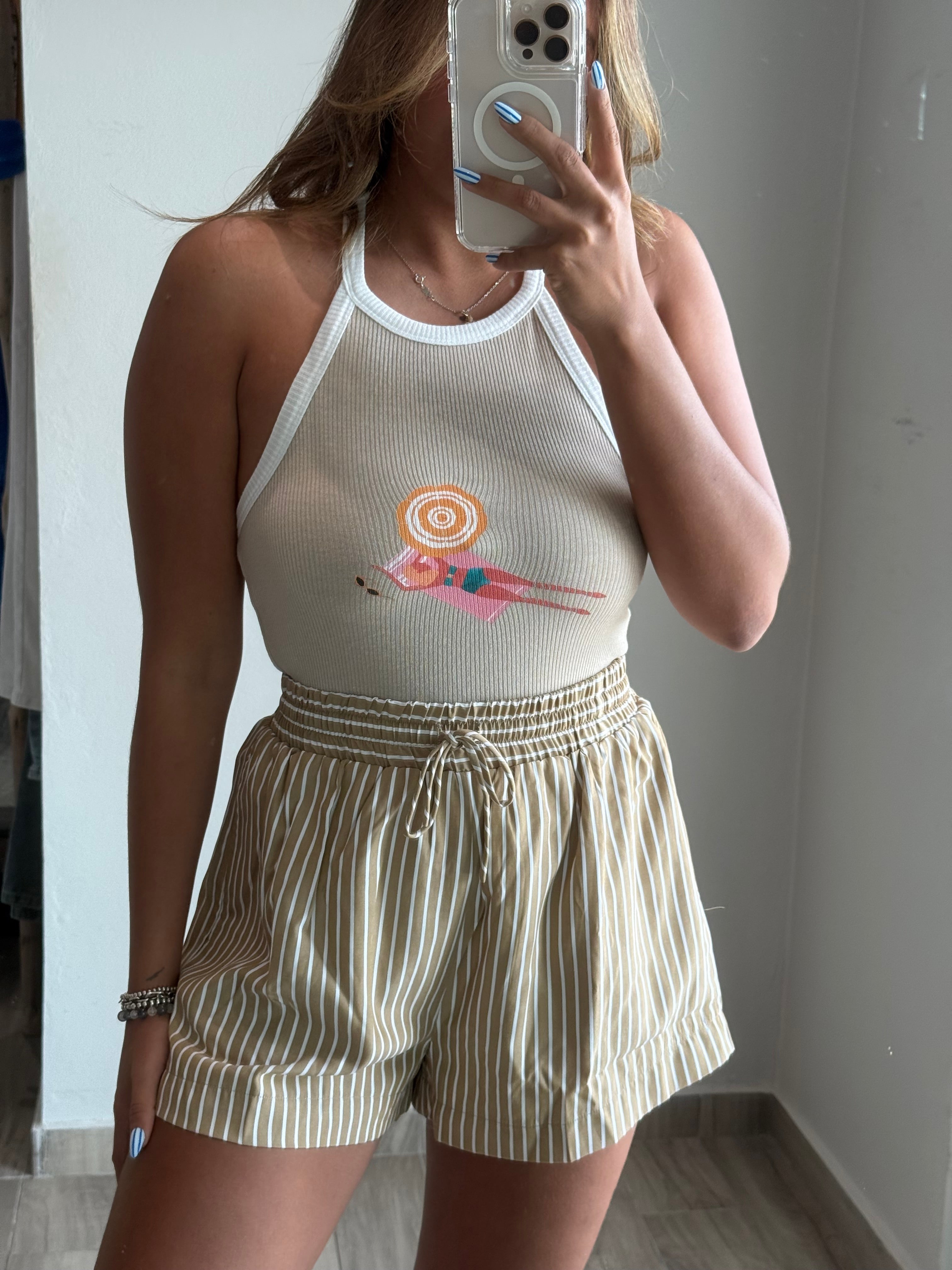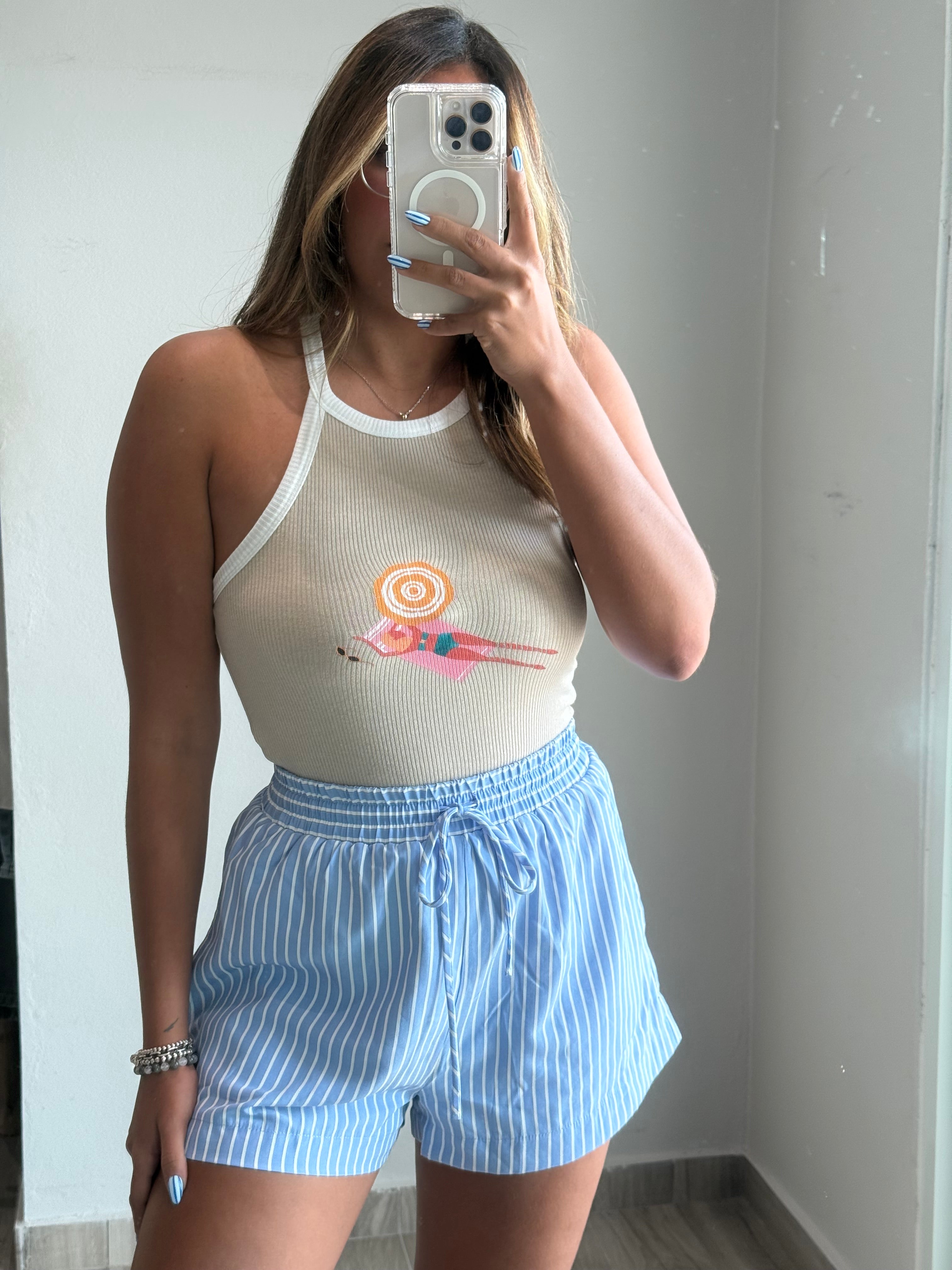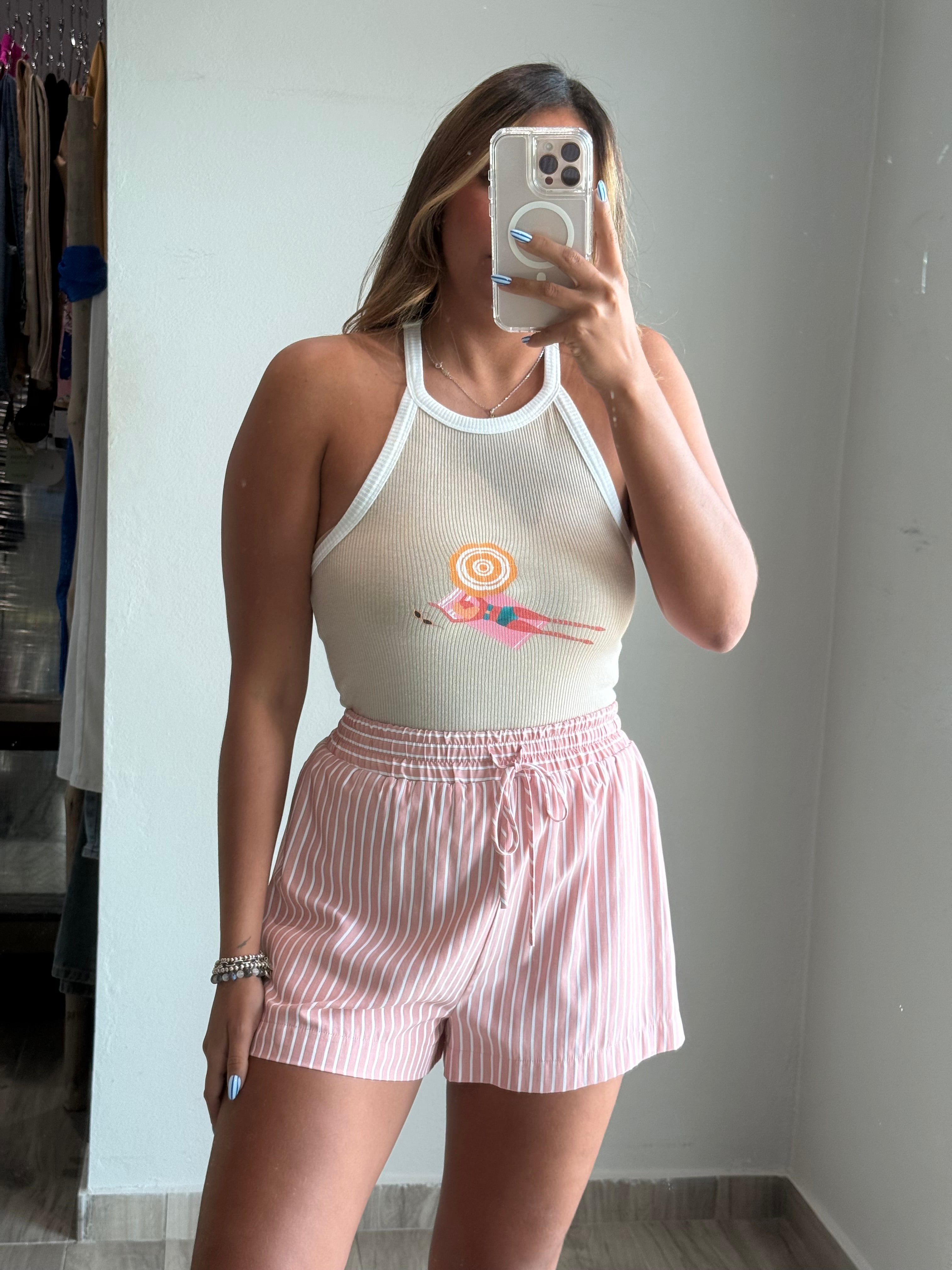 Capri Striped Down Shorts