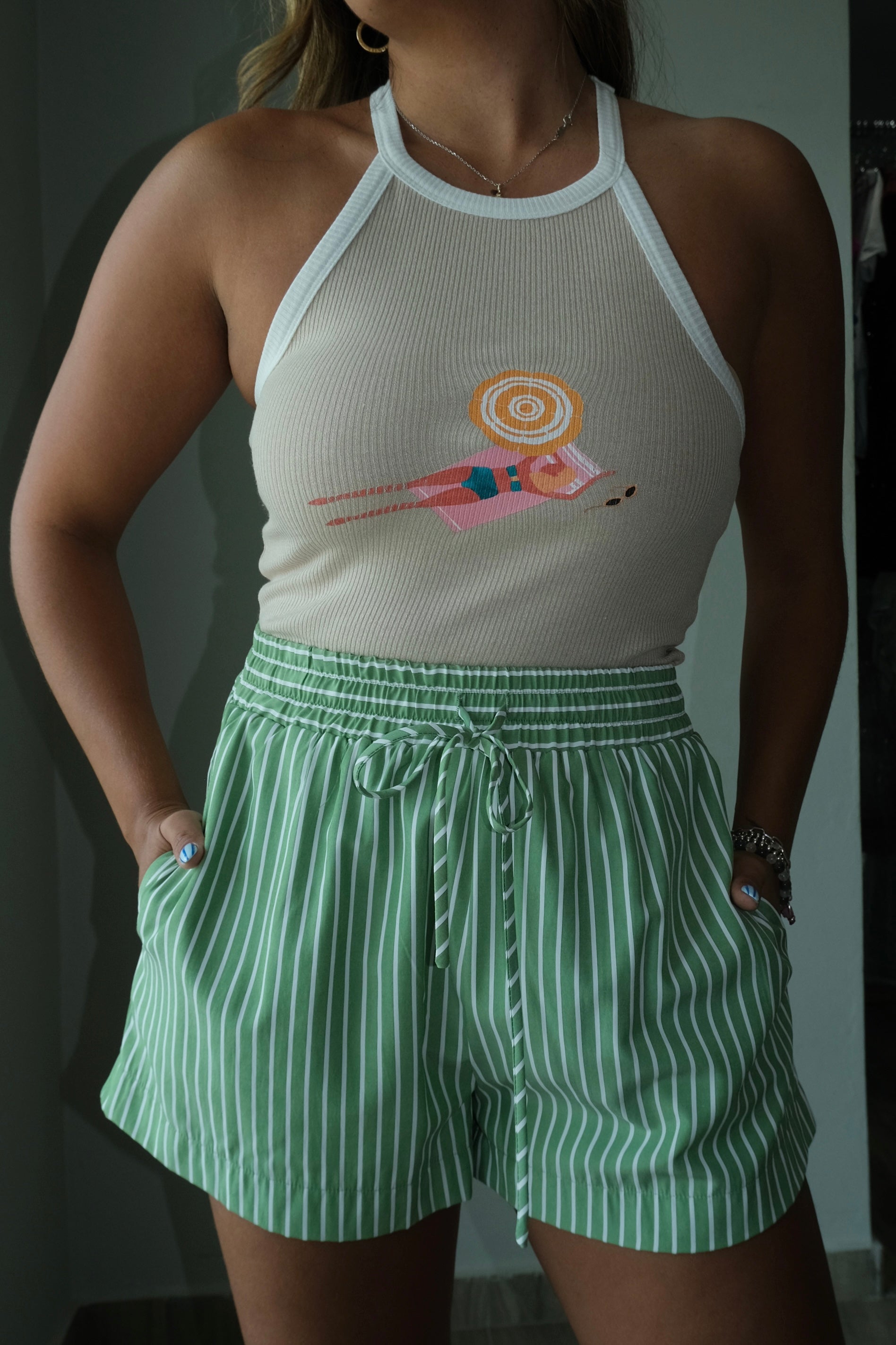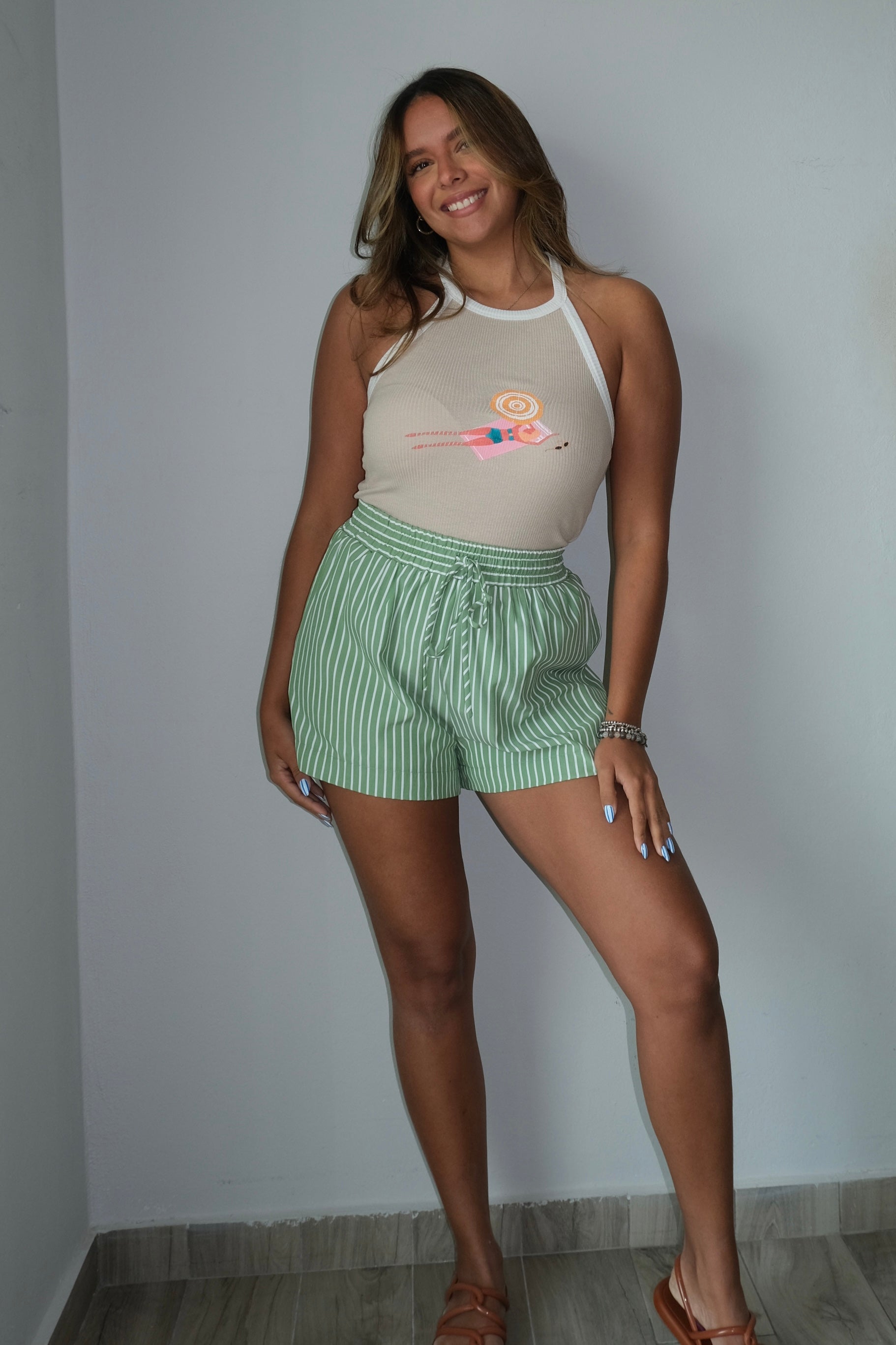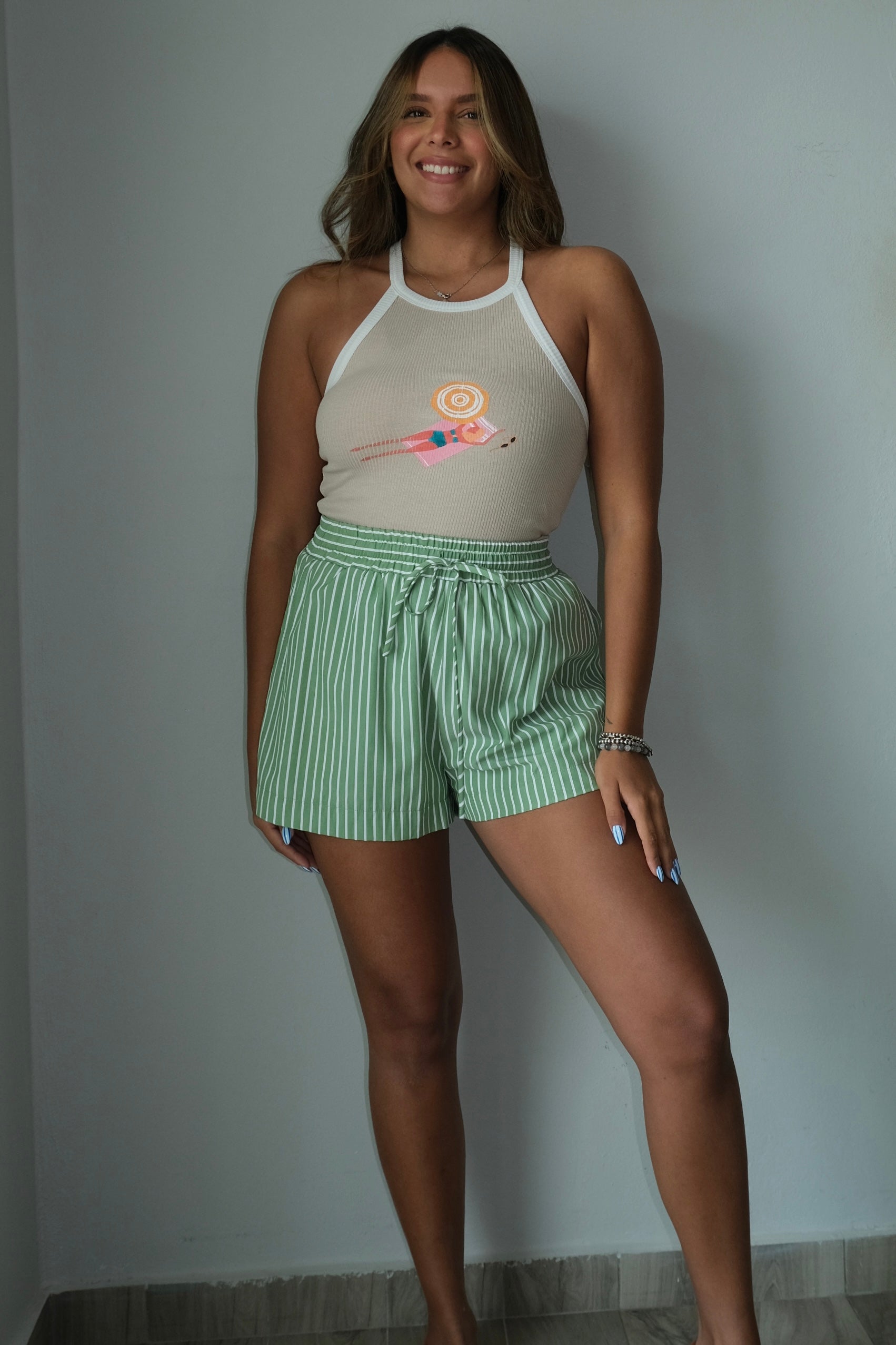 Capri Striped Down Shorts