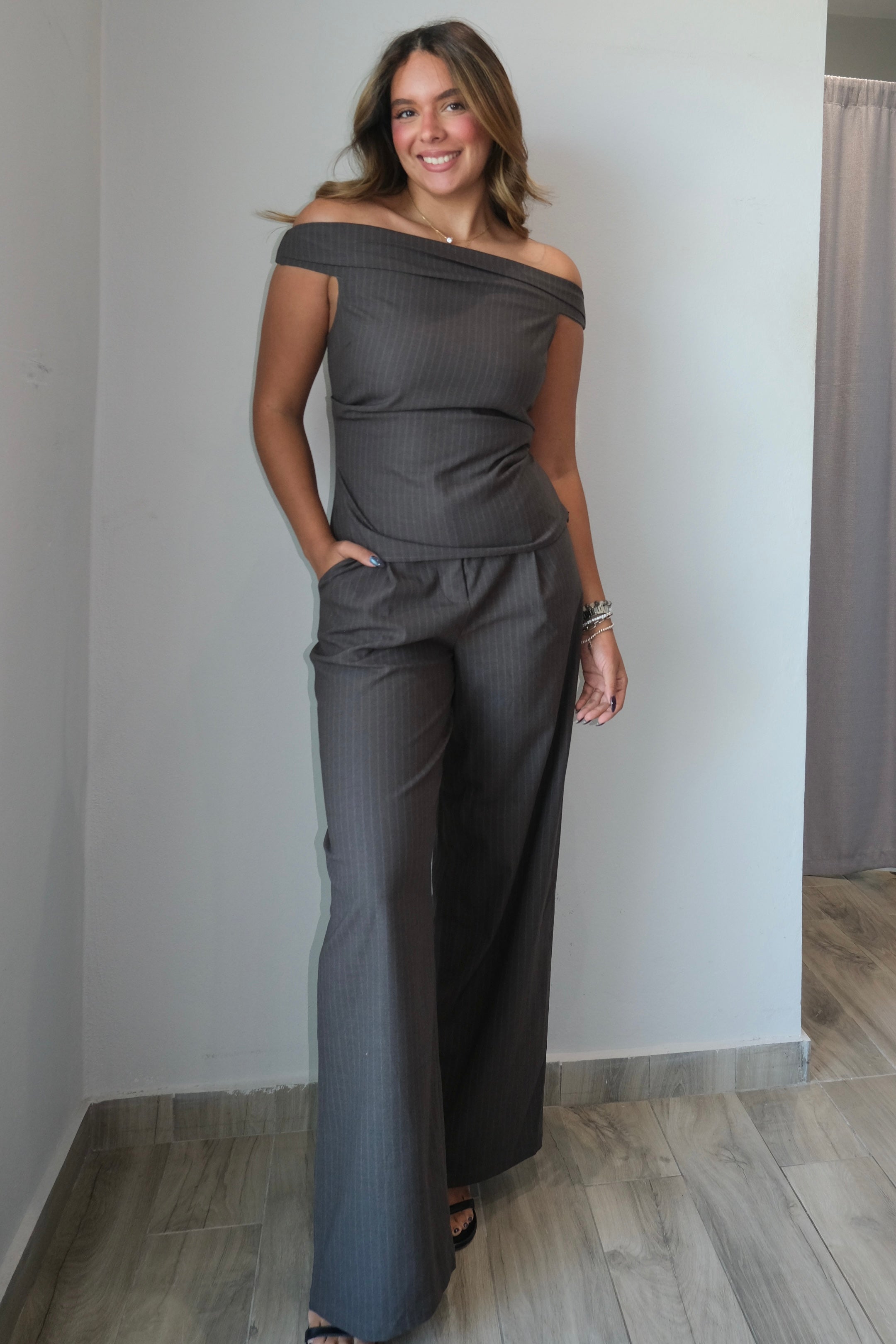 Alejandra Pinstriped Top & Pants Set