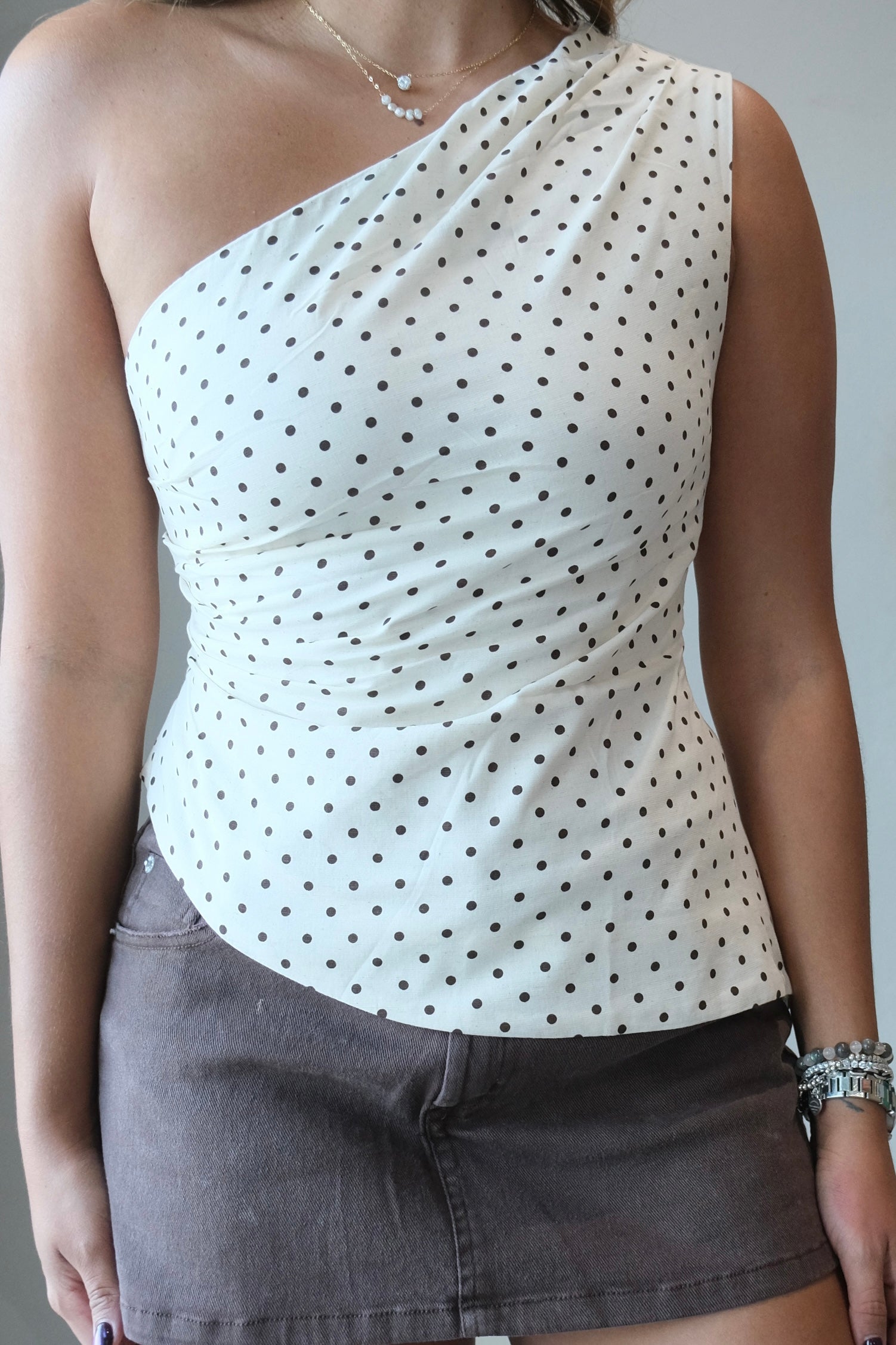 Amanda Asymmetrical One Shoulder Polka Dot Top