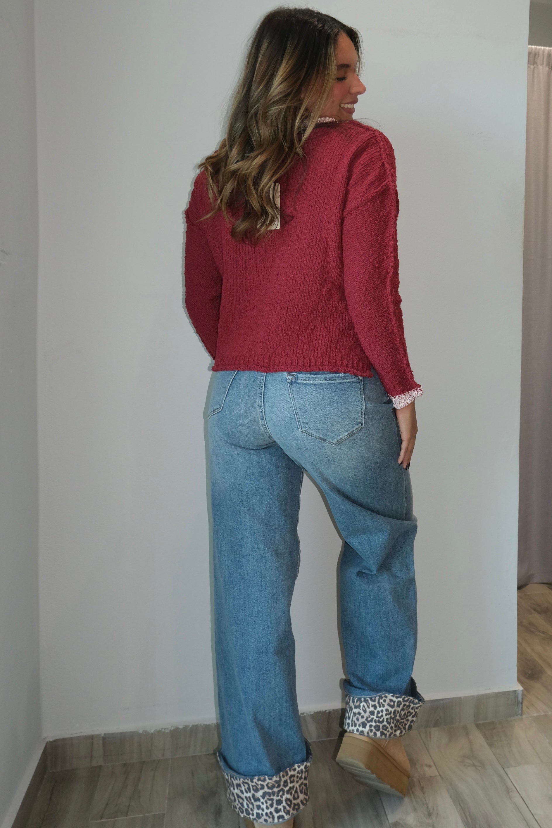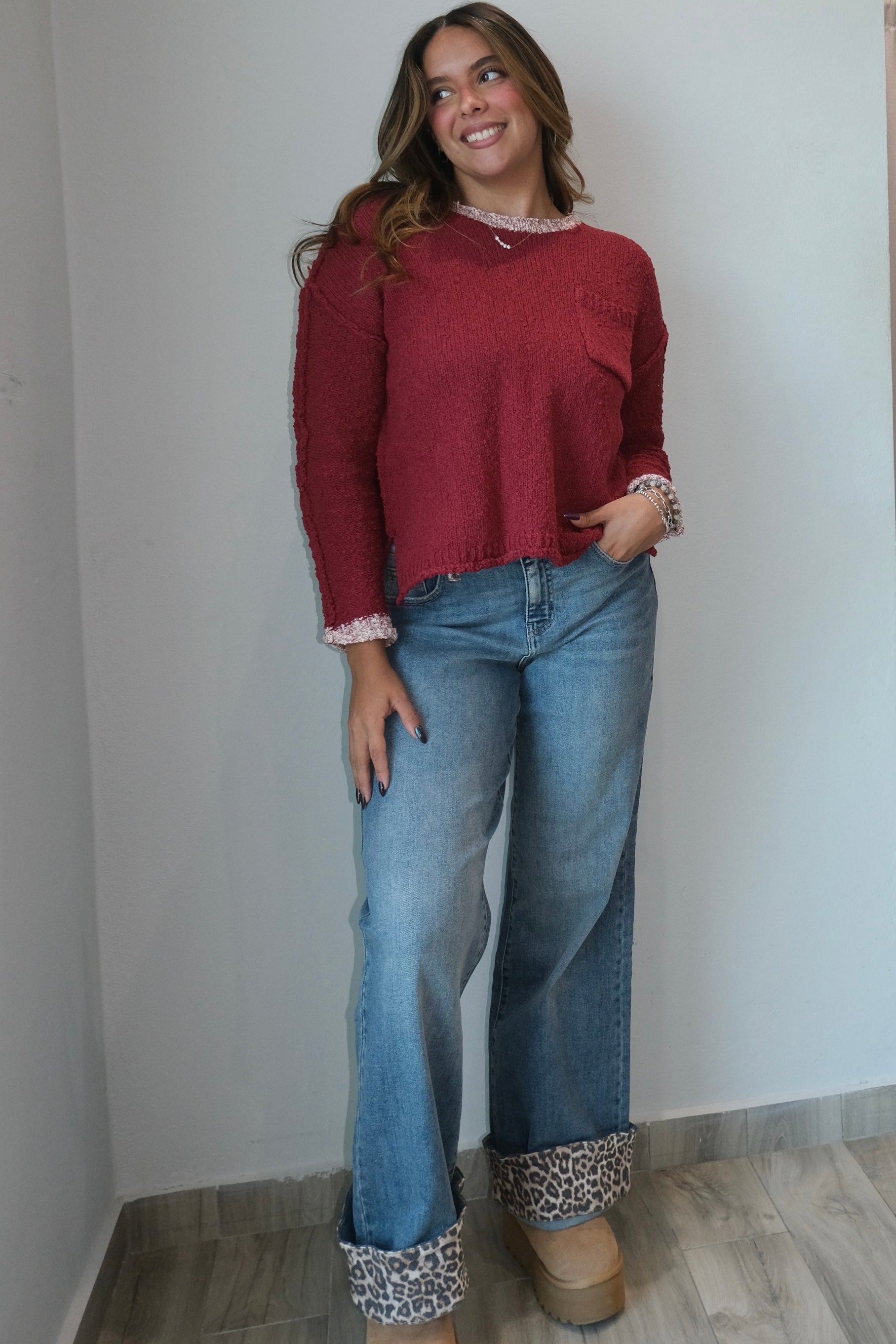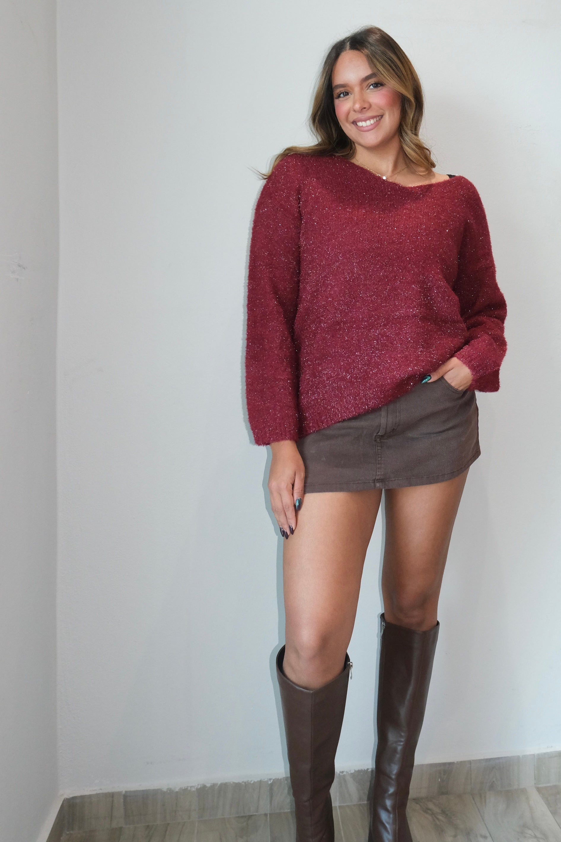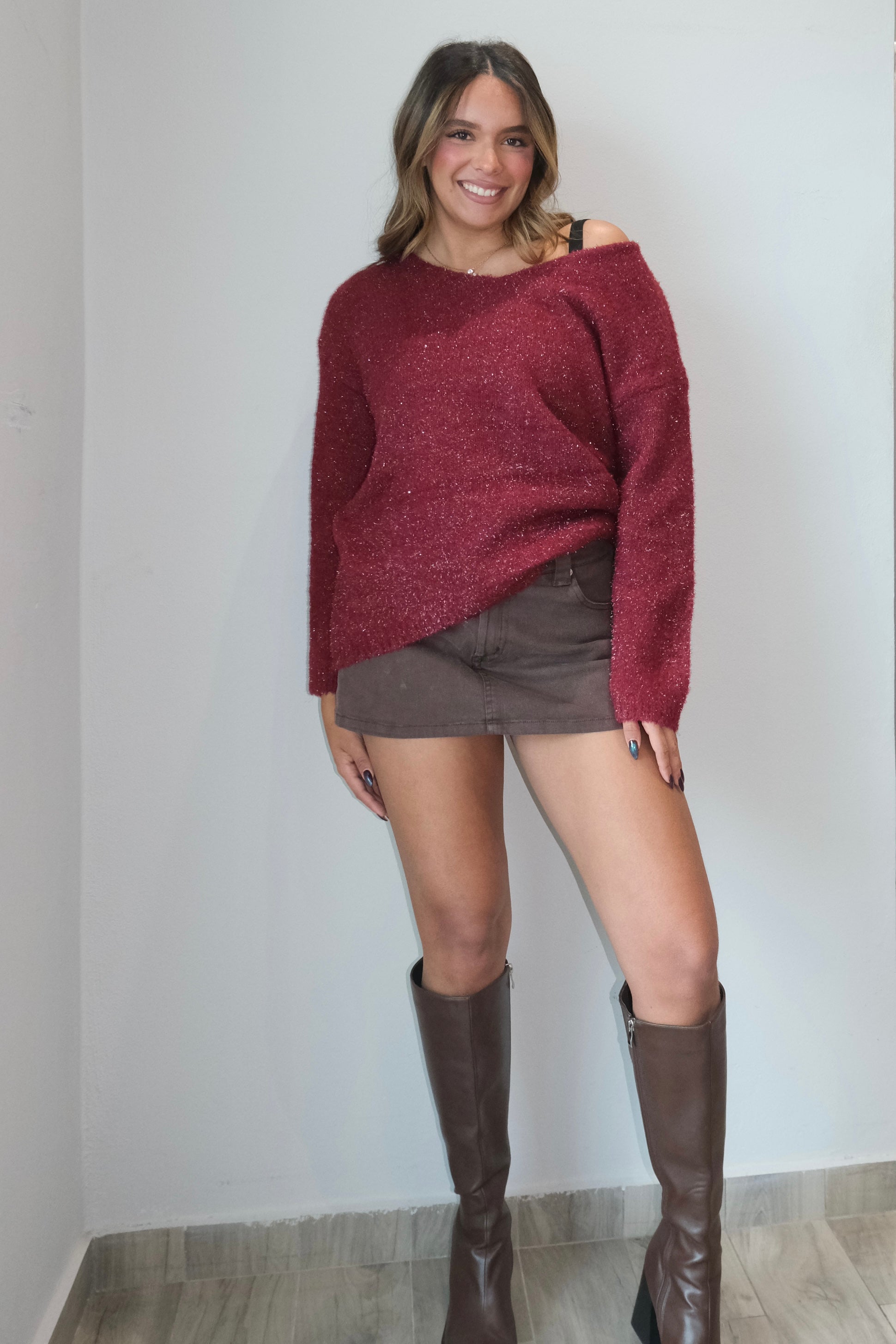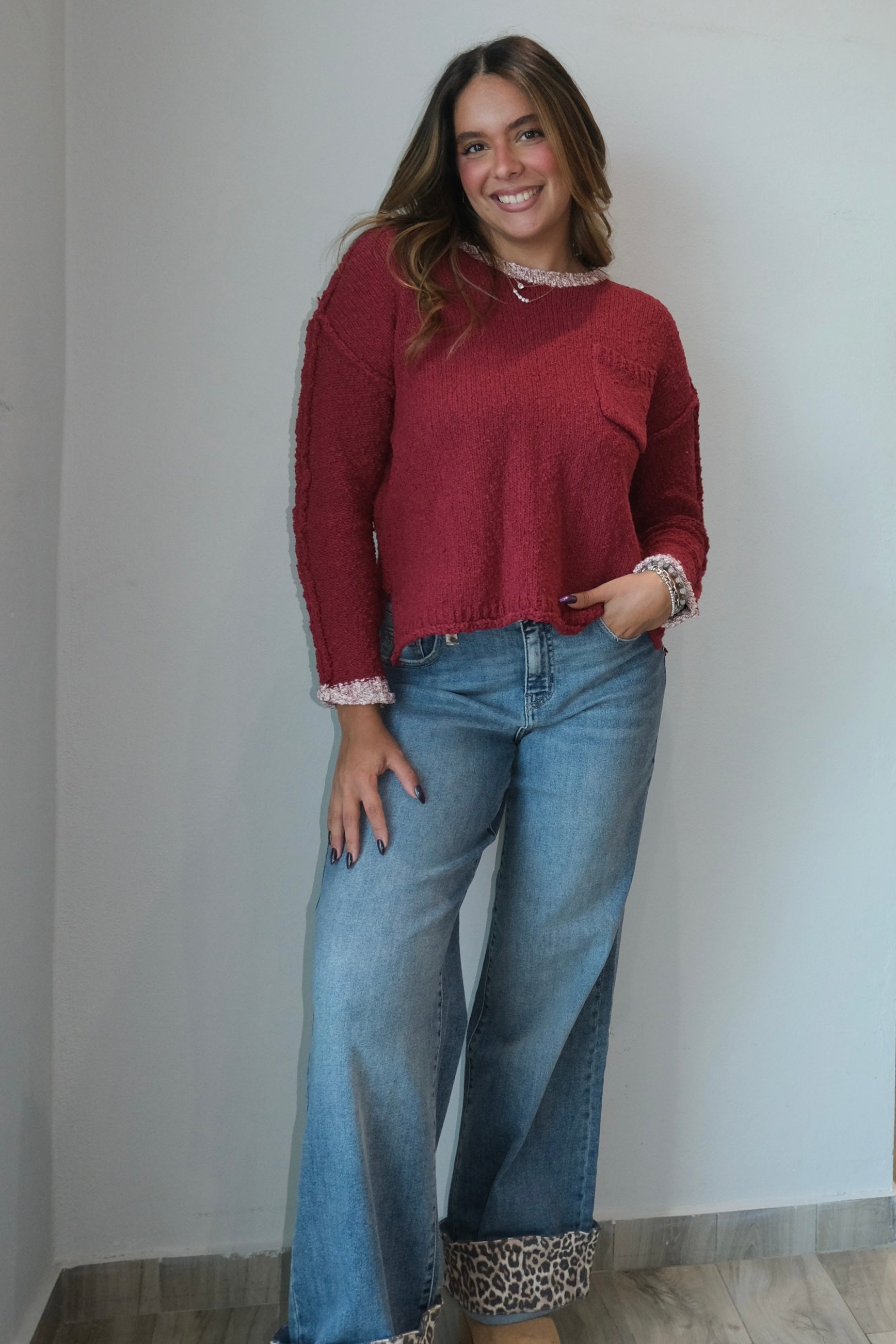 Berry Boat Neck Knit Sweater Top