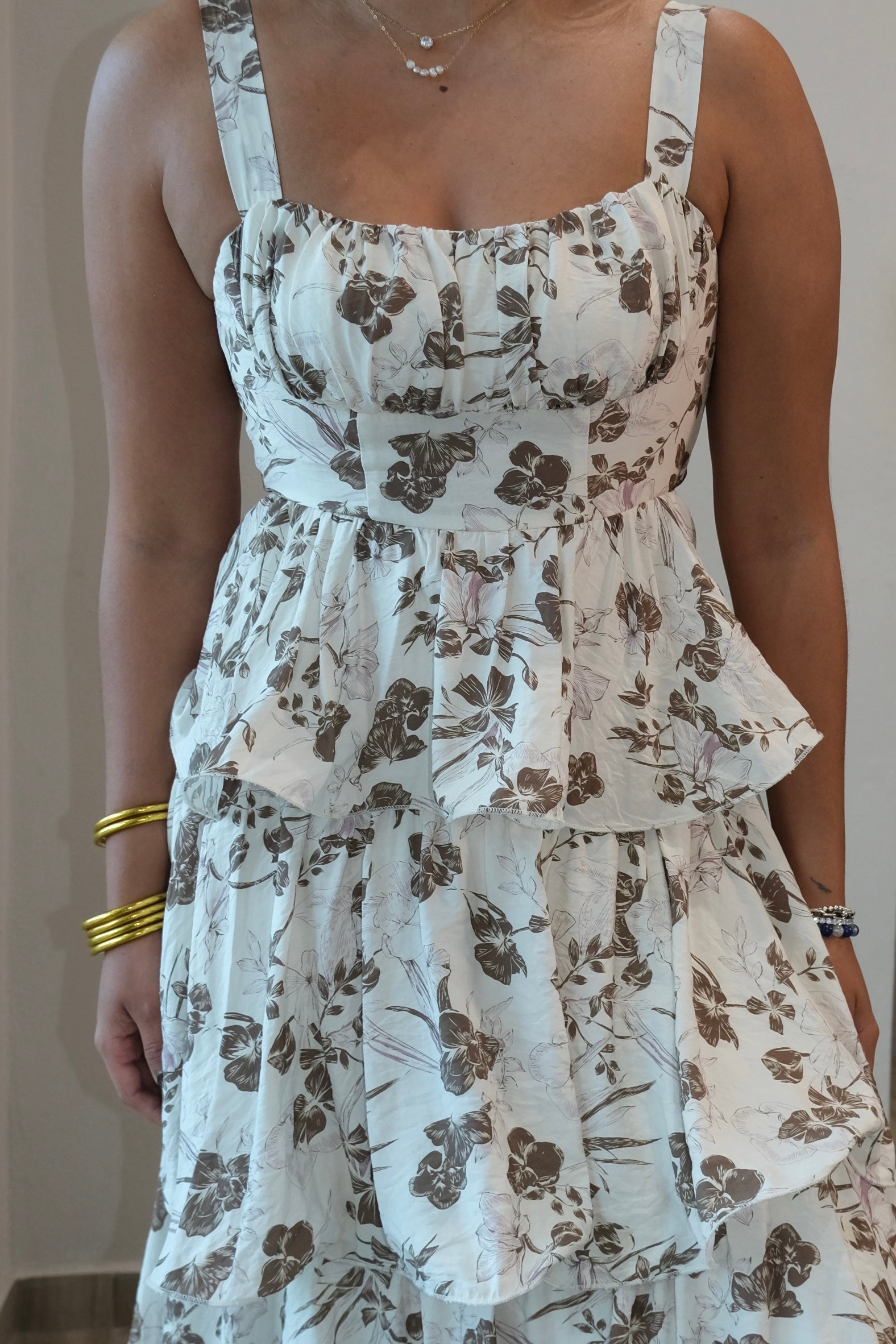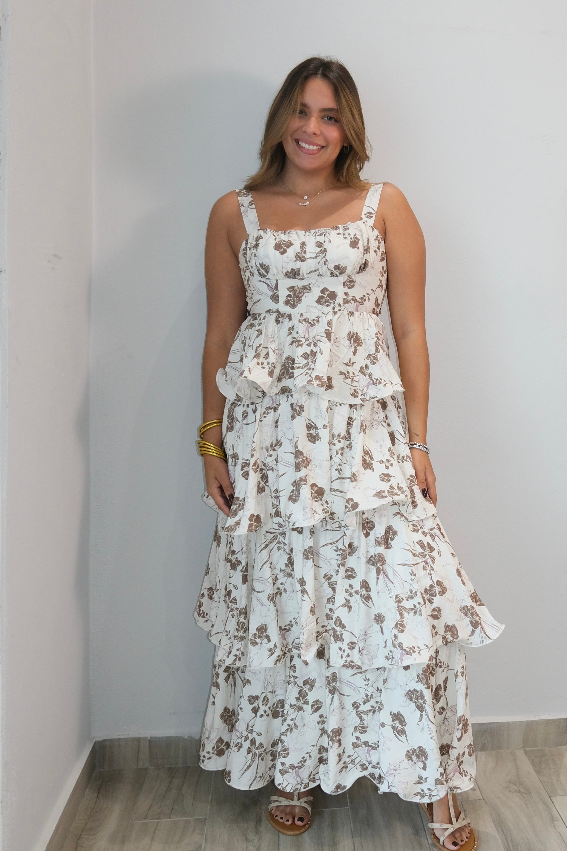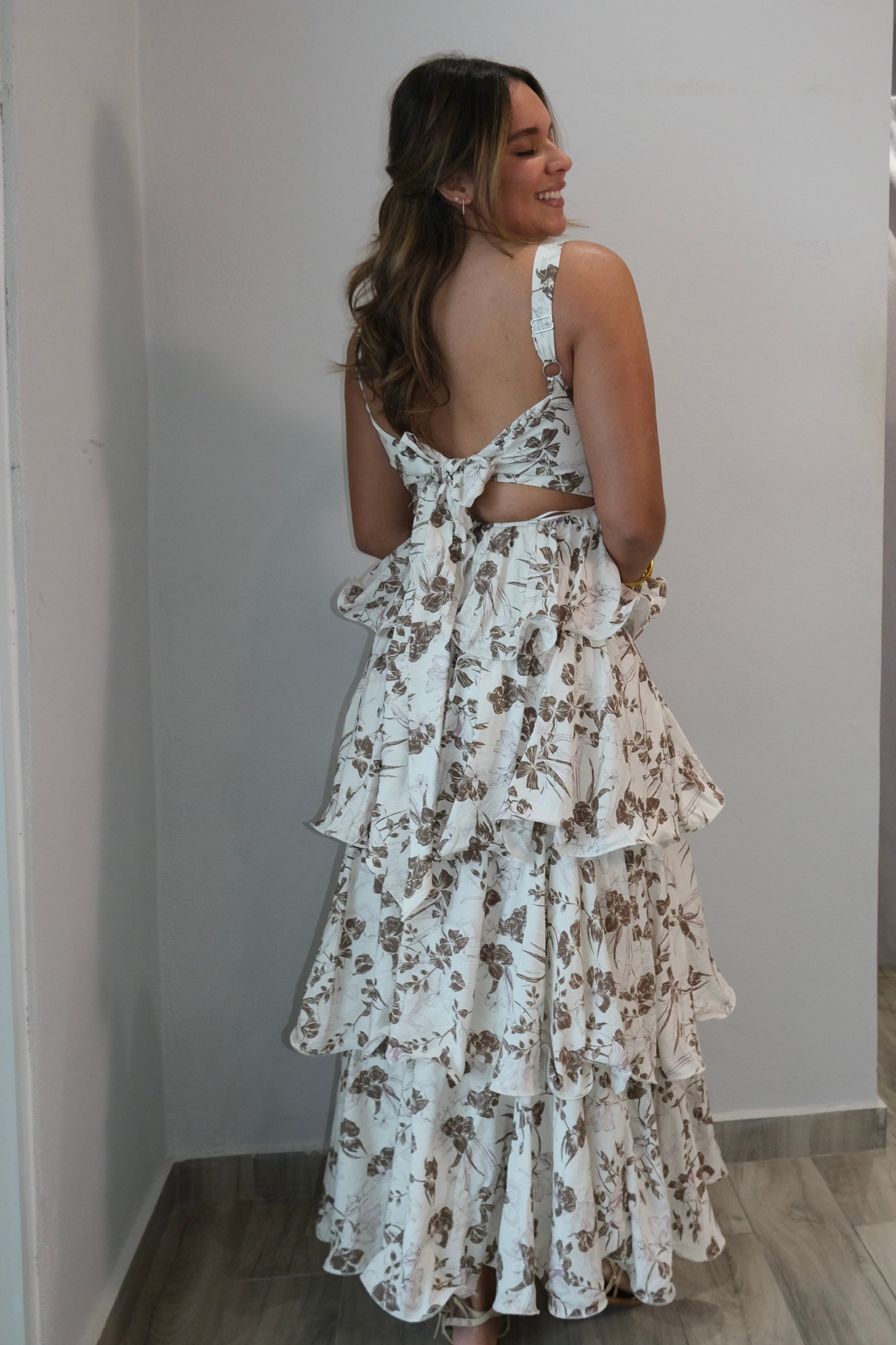 Autumn Floral Print Tiered Dress