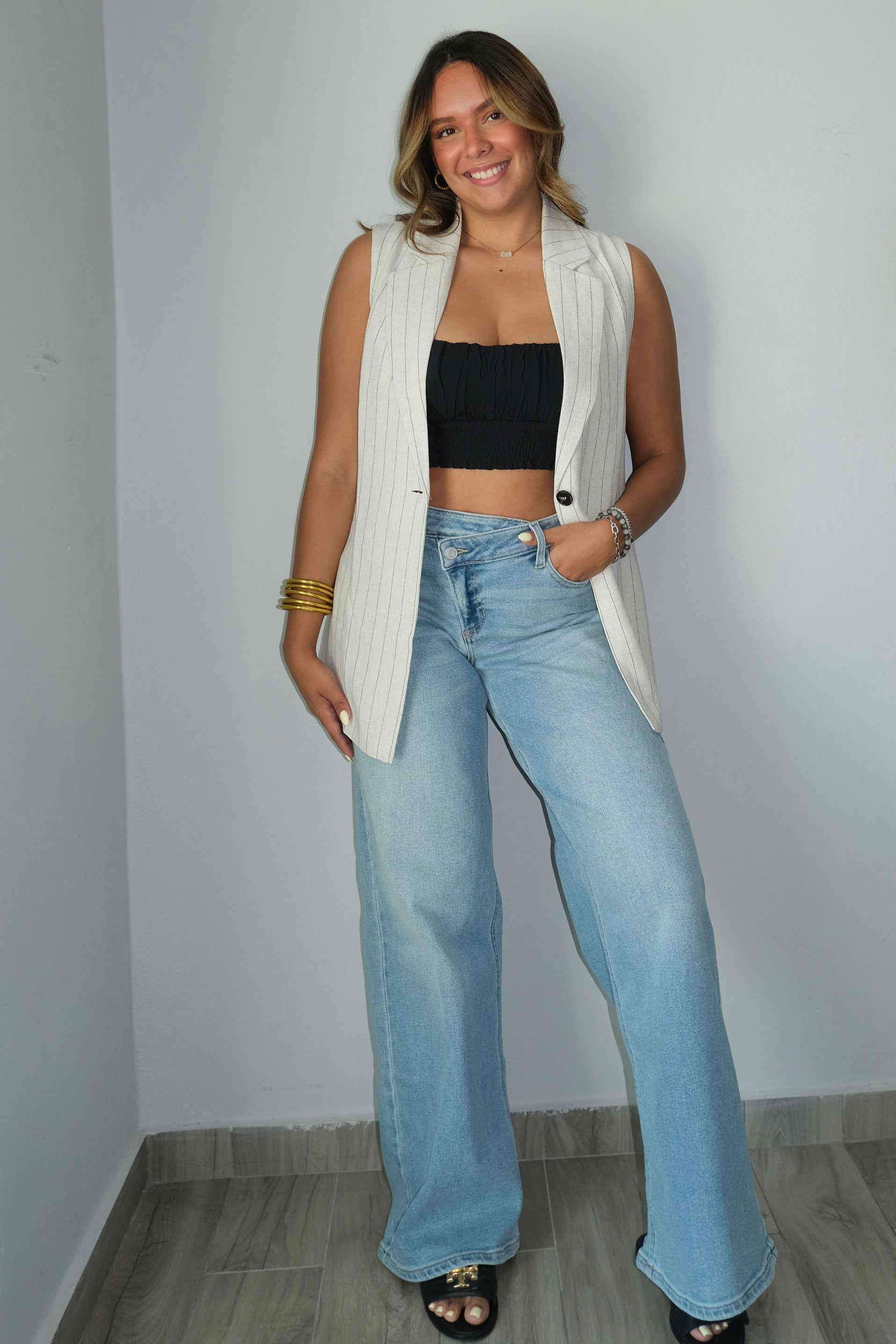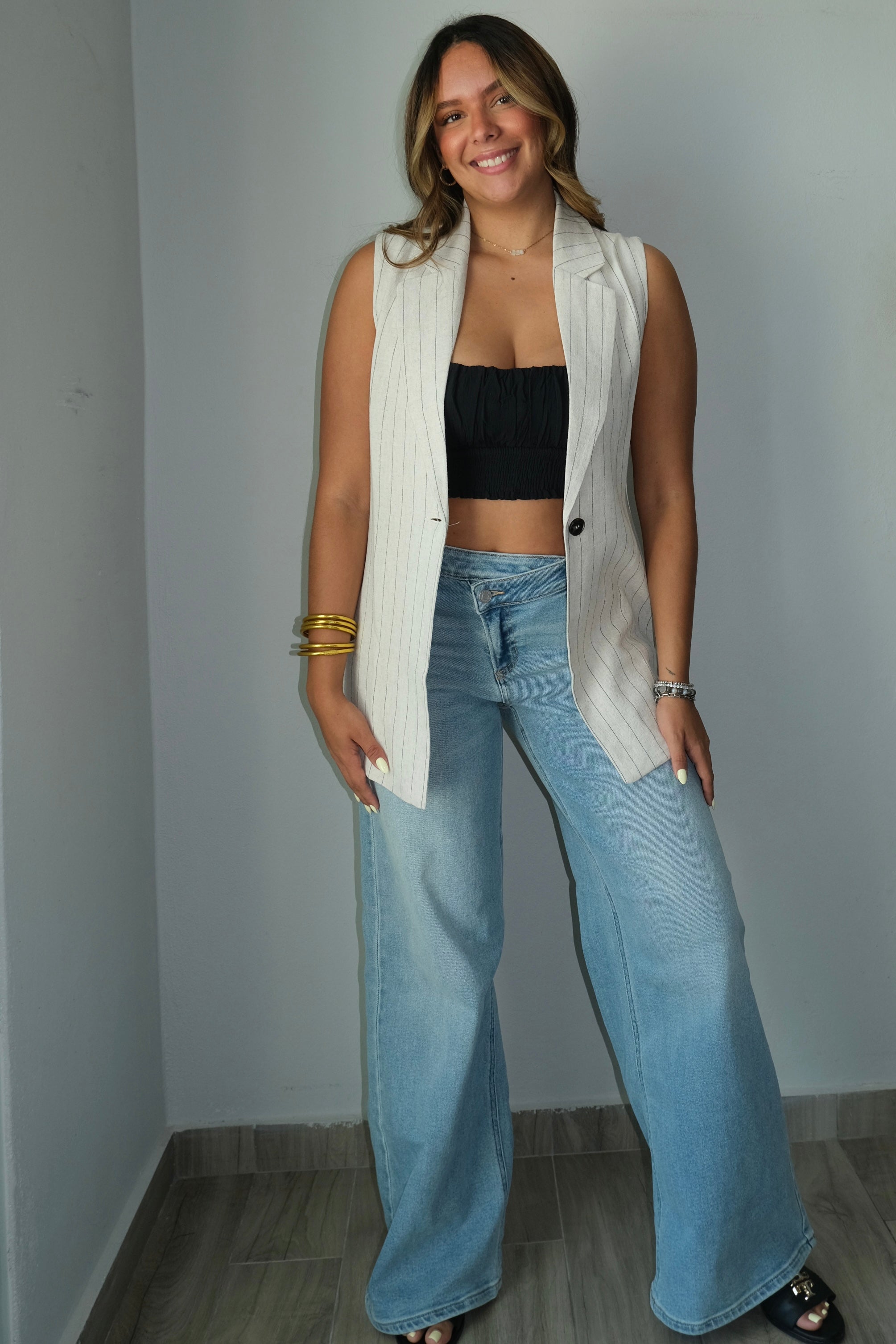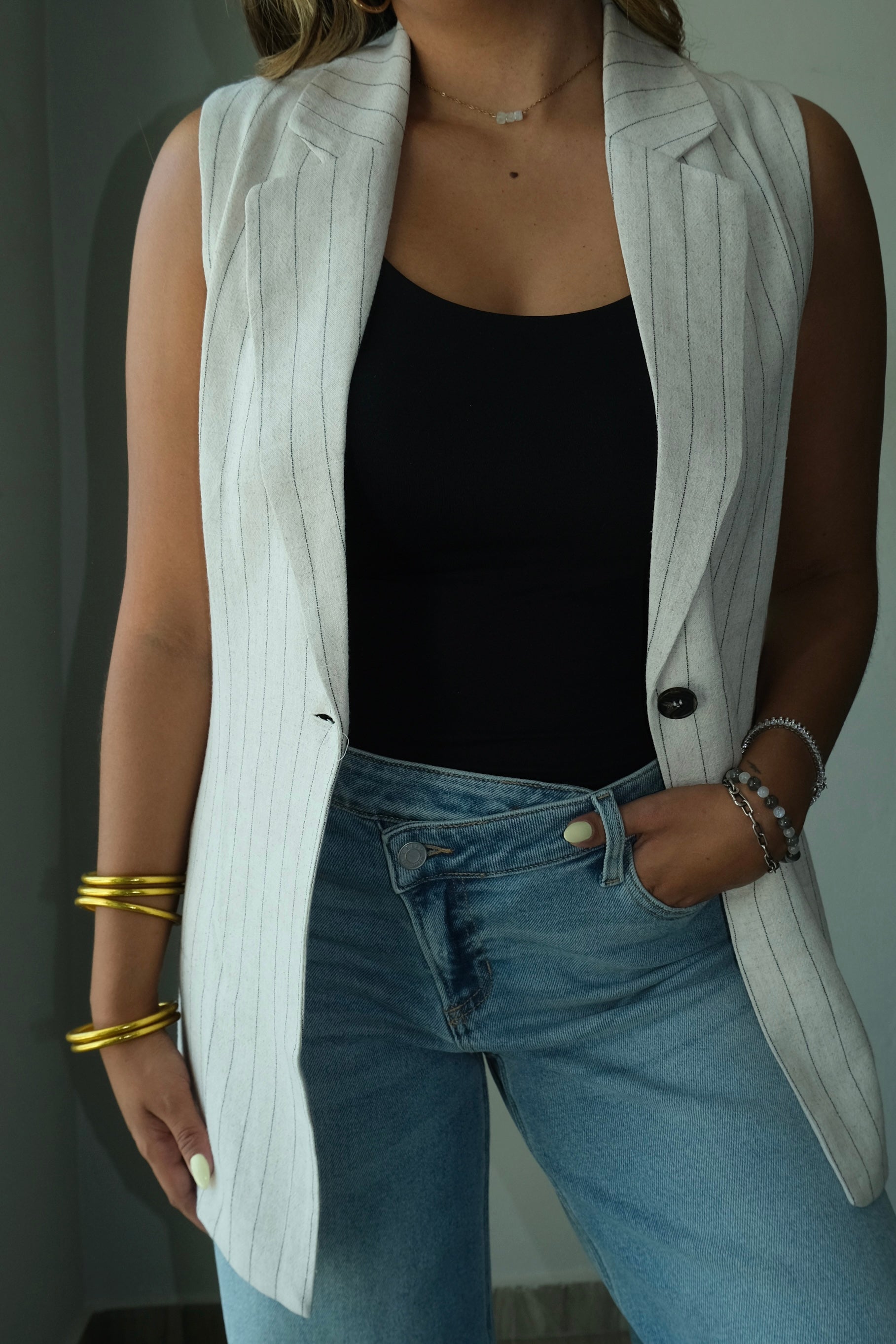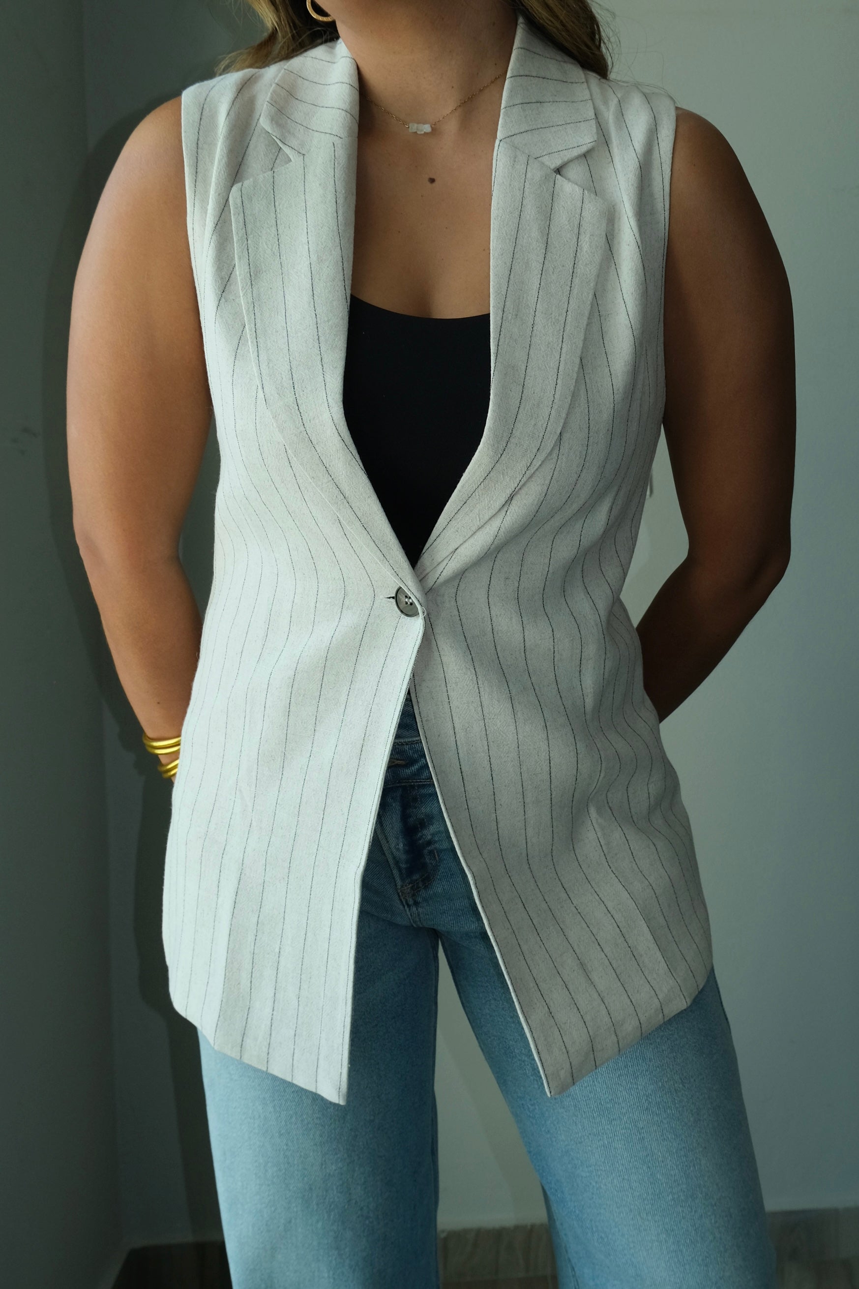 Ambar Oversized Pin Stripped Vest Top