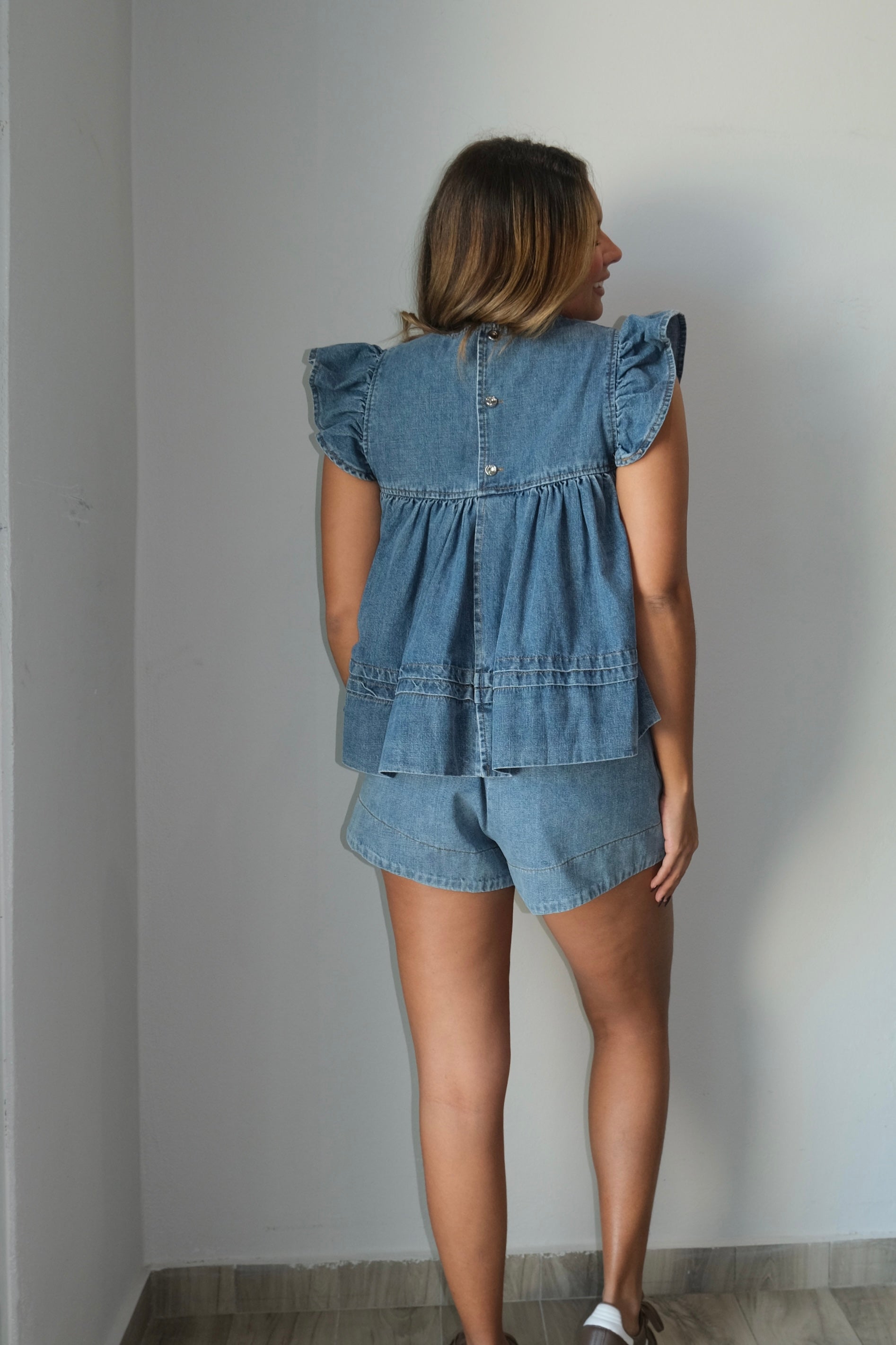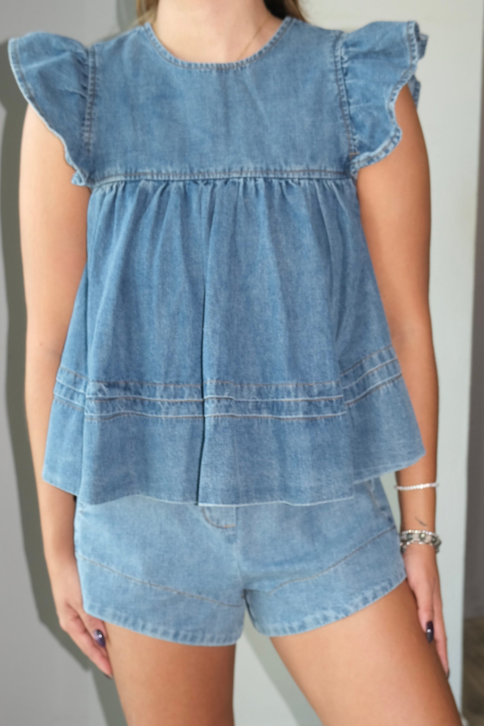 Callie Flutter Sleeve & Boxer Shorts Denim Set