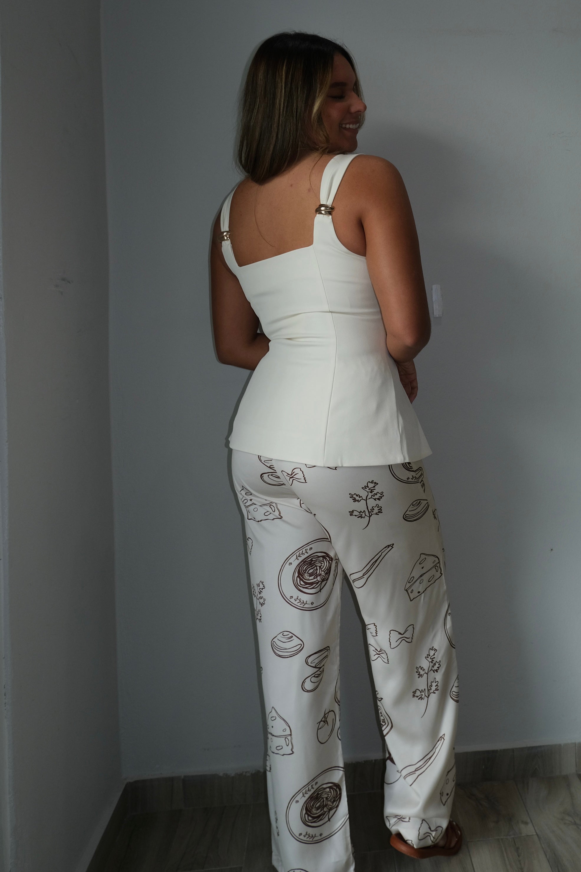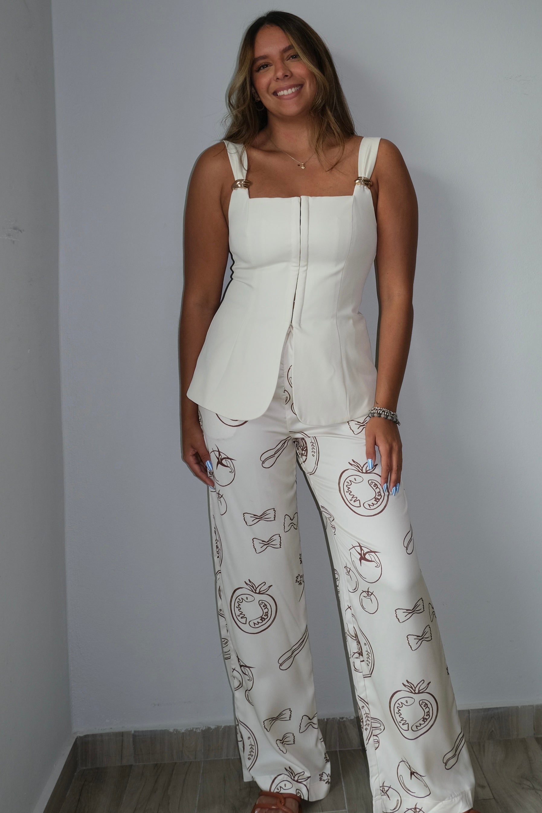 Amore Italian Print Front Tie Pants
