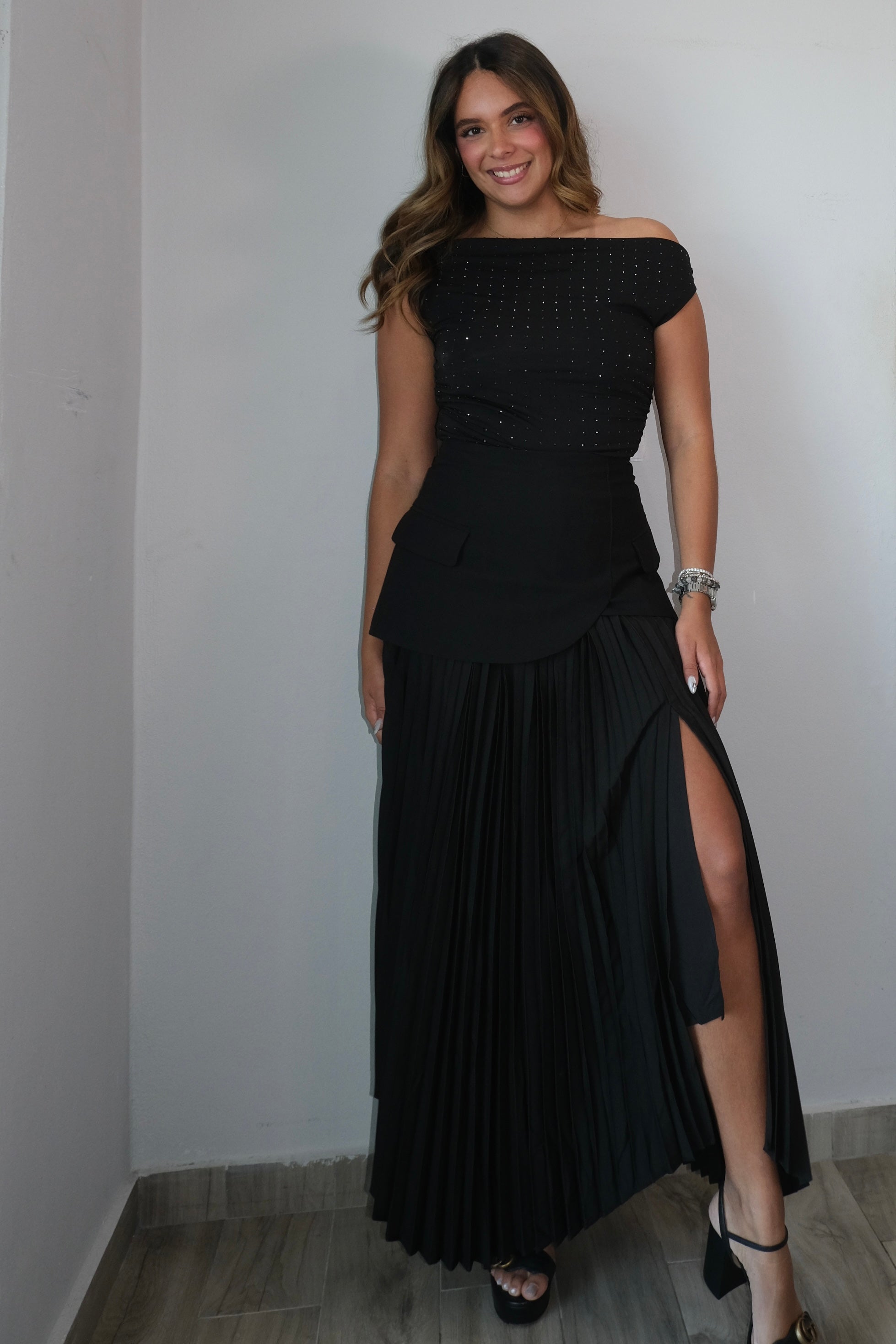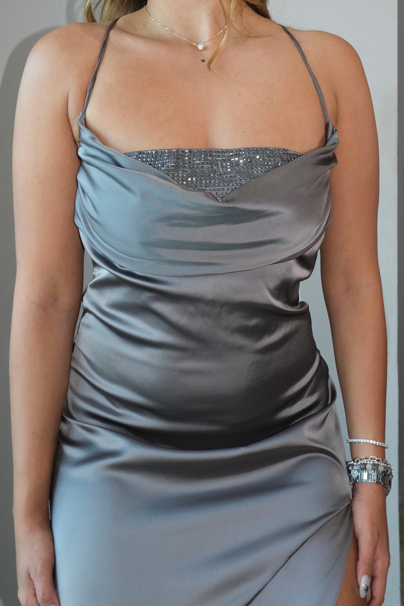 Aria Organza Shiny Ruched Tank Top & Skirt Set