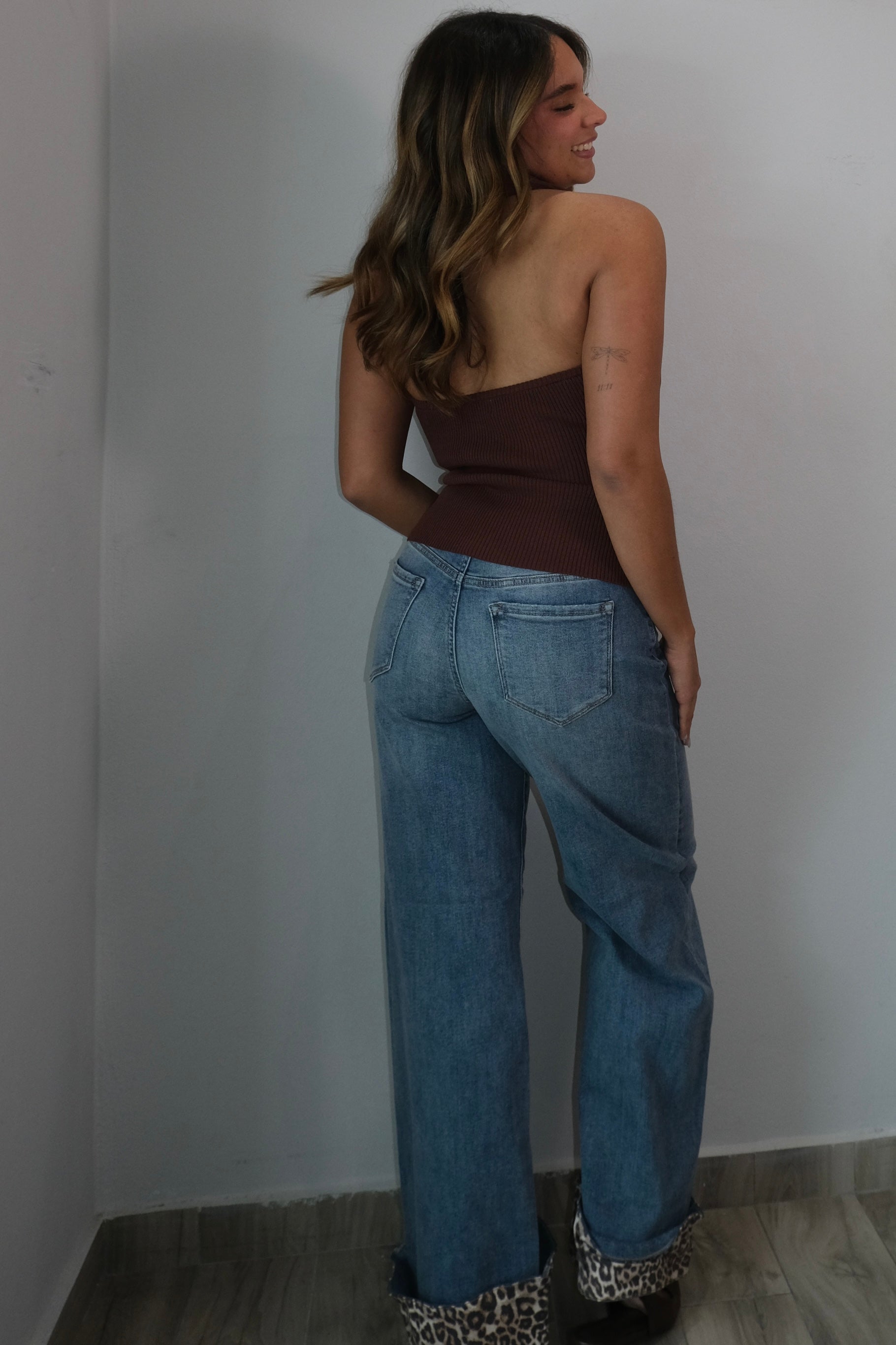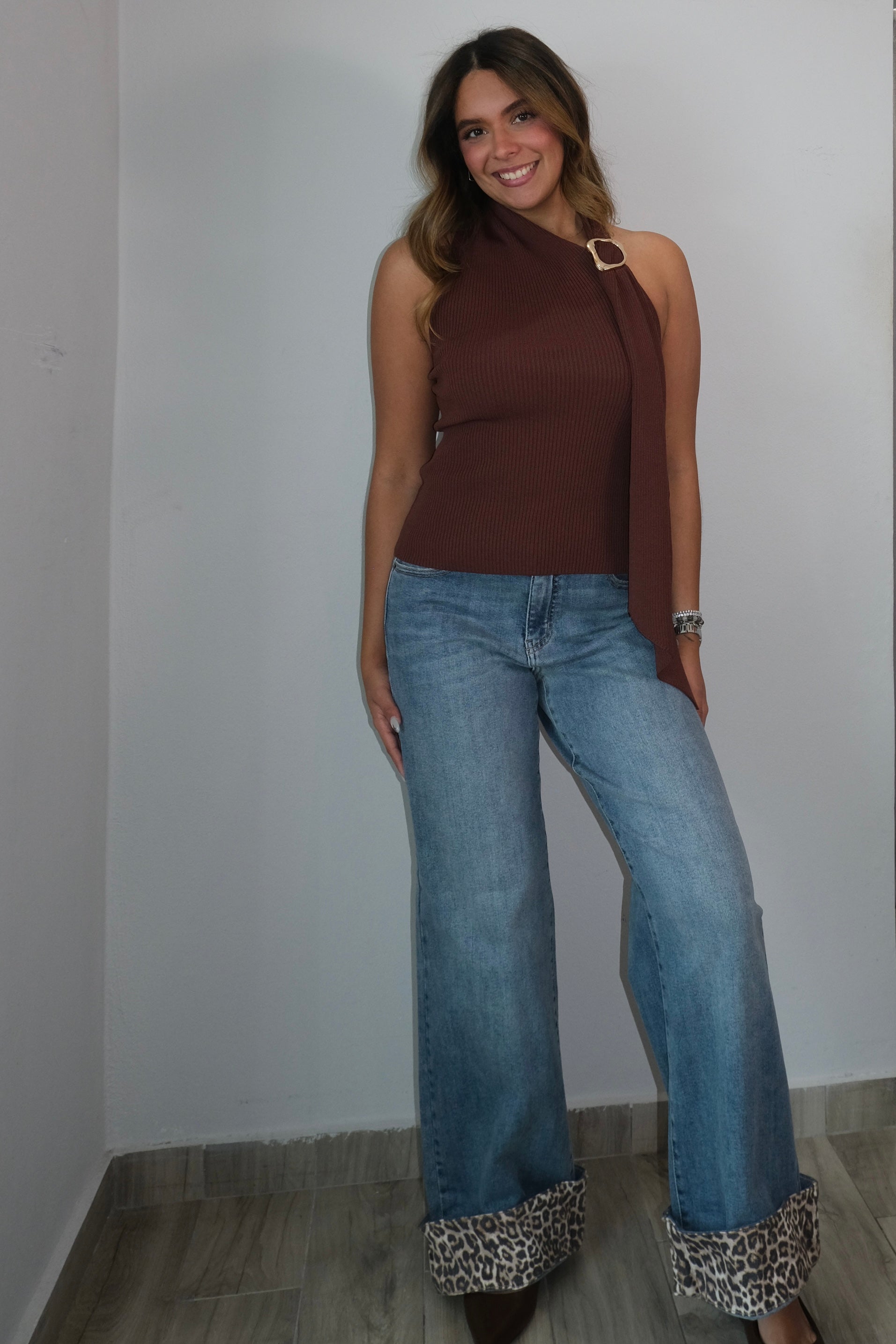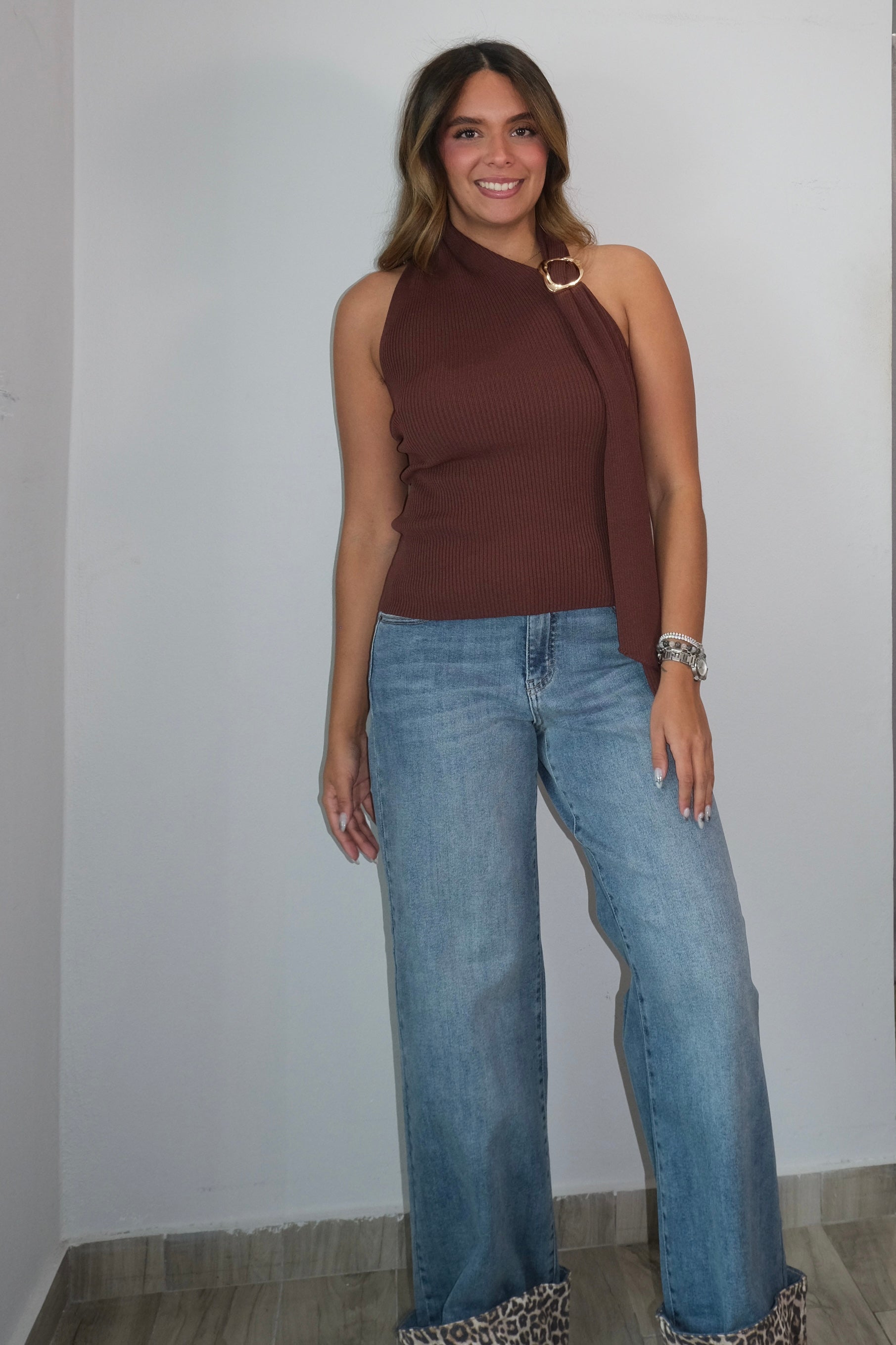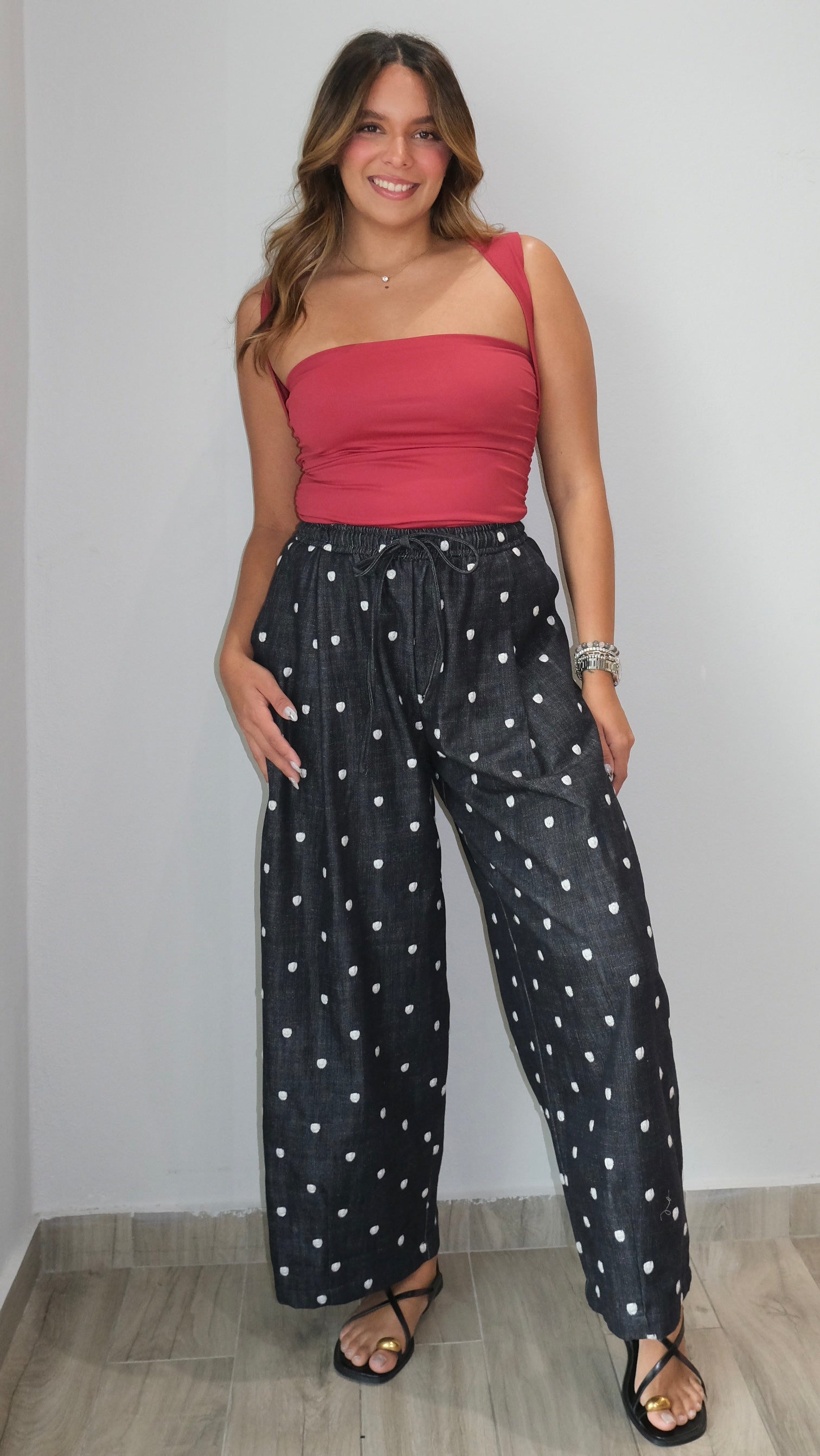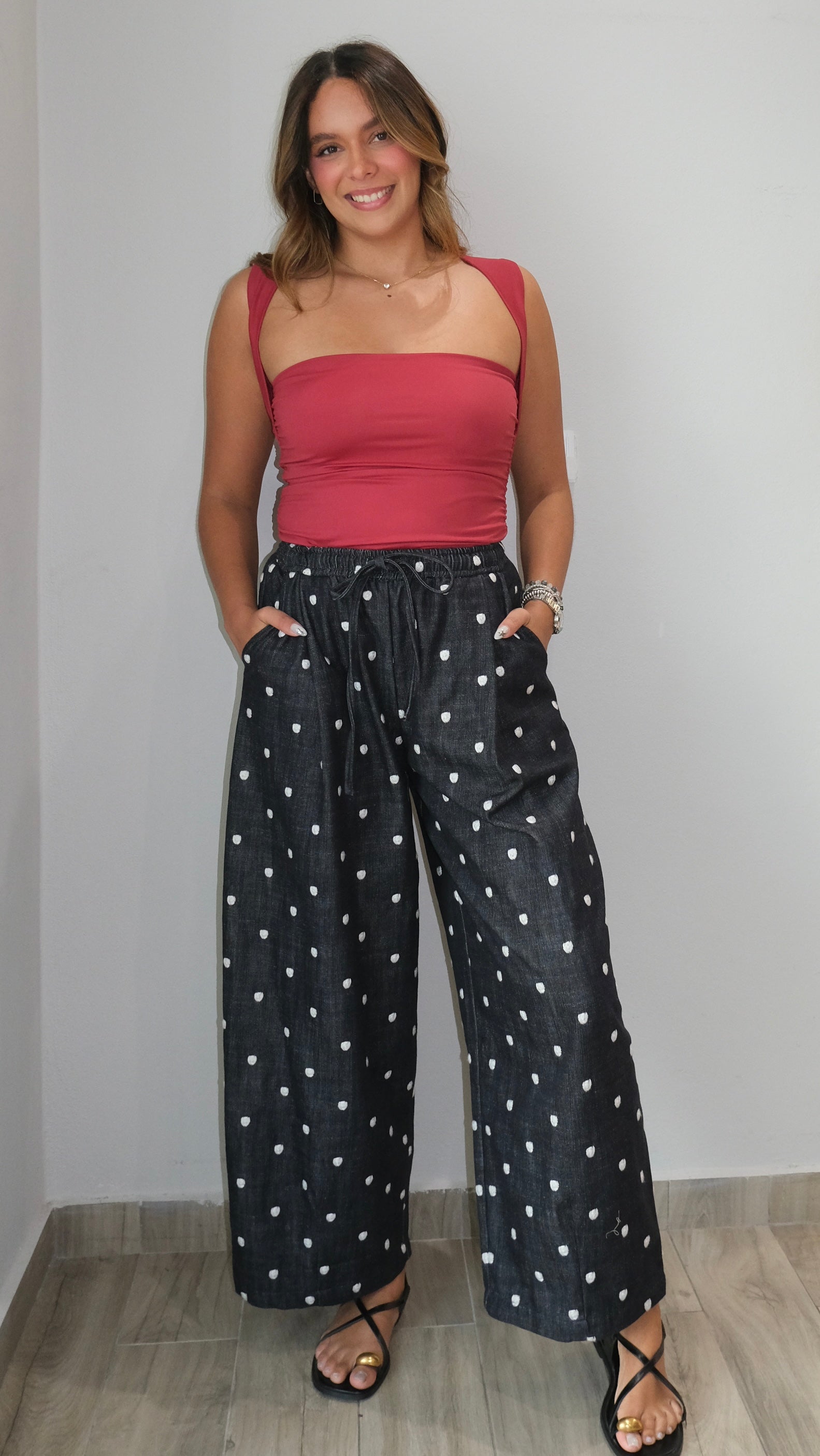 Nicole Lace Hem Halter Top & Wide Leg Pants Set