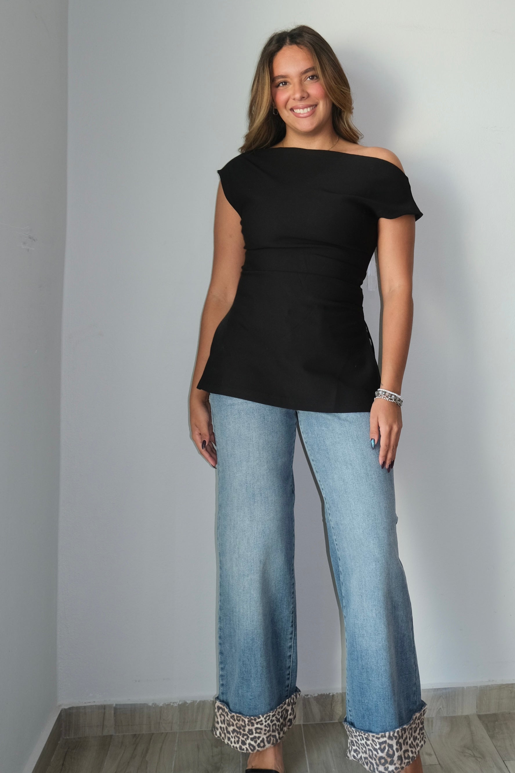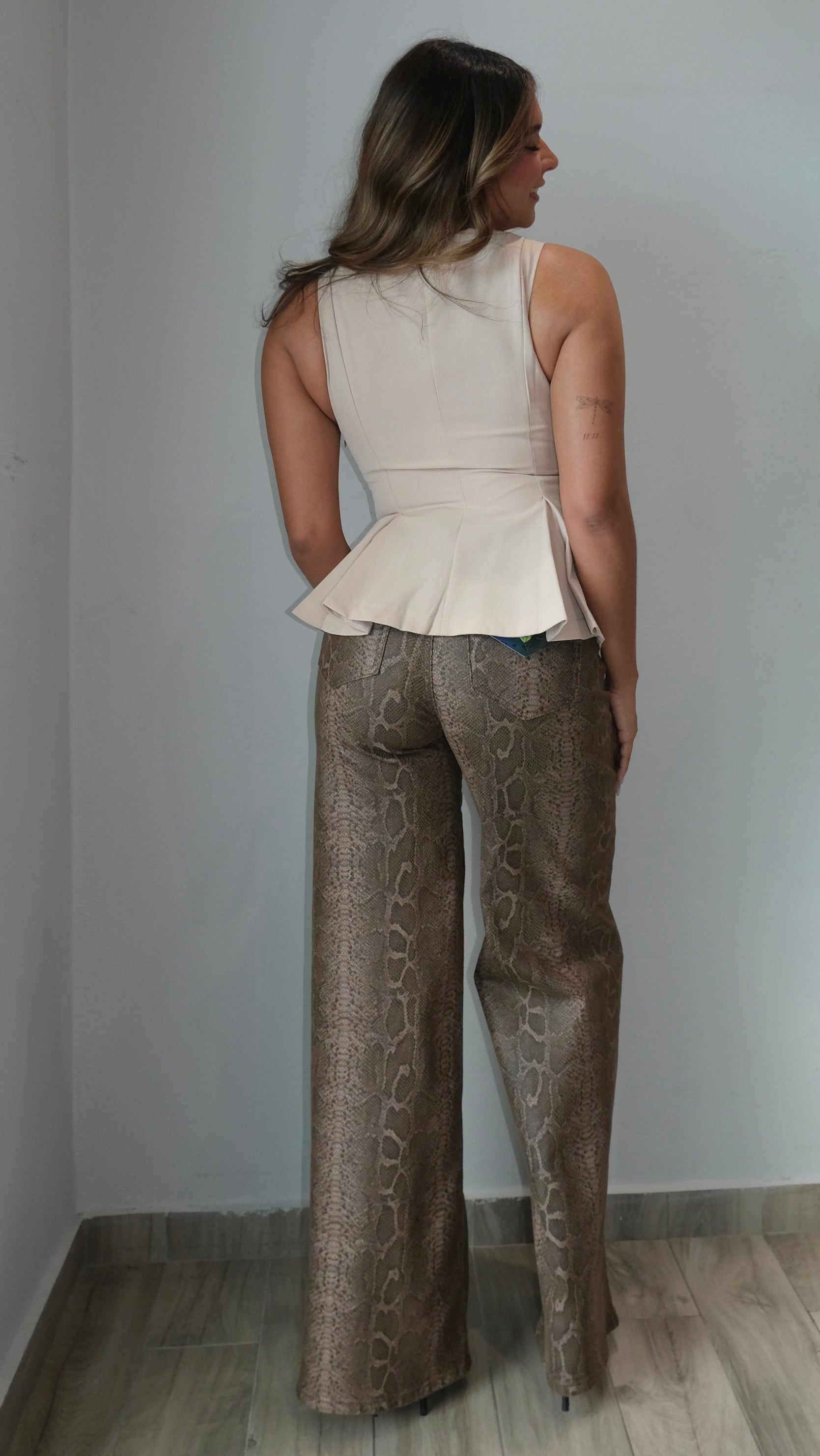 Olivia Mocke Neck Top & High Waist Tailored Pants Set