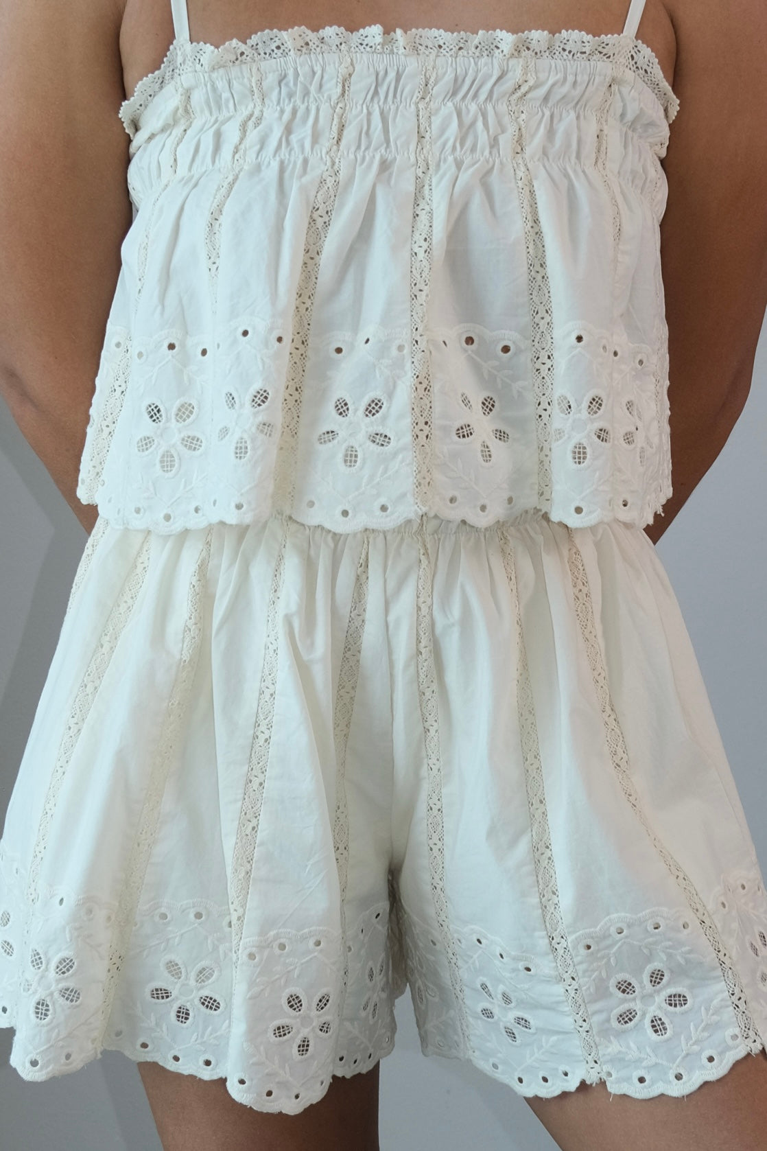 Indie Embroidered Wood Details Vest Top & Pants Set