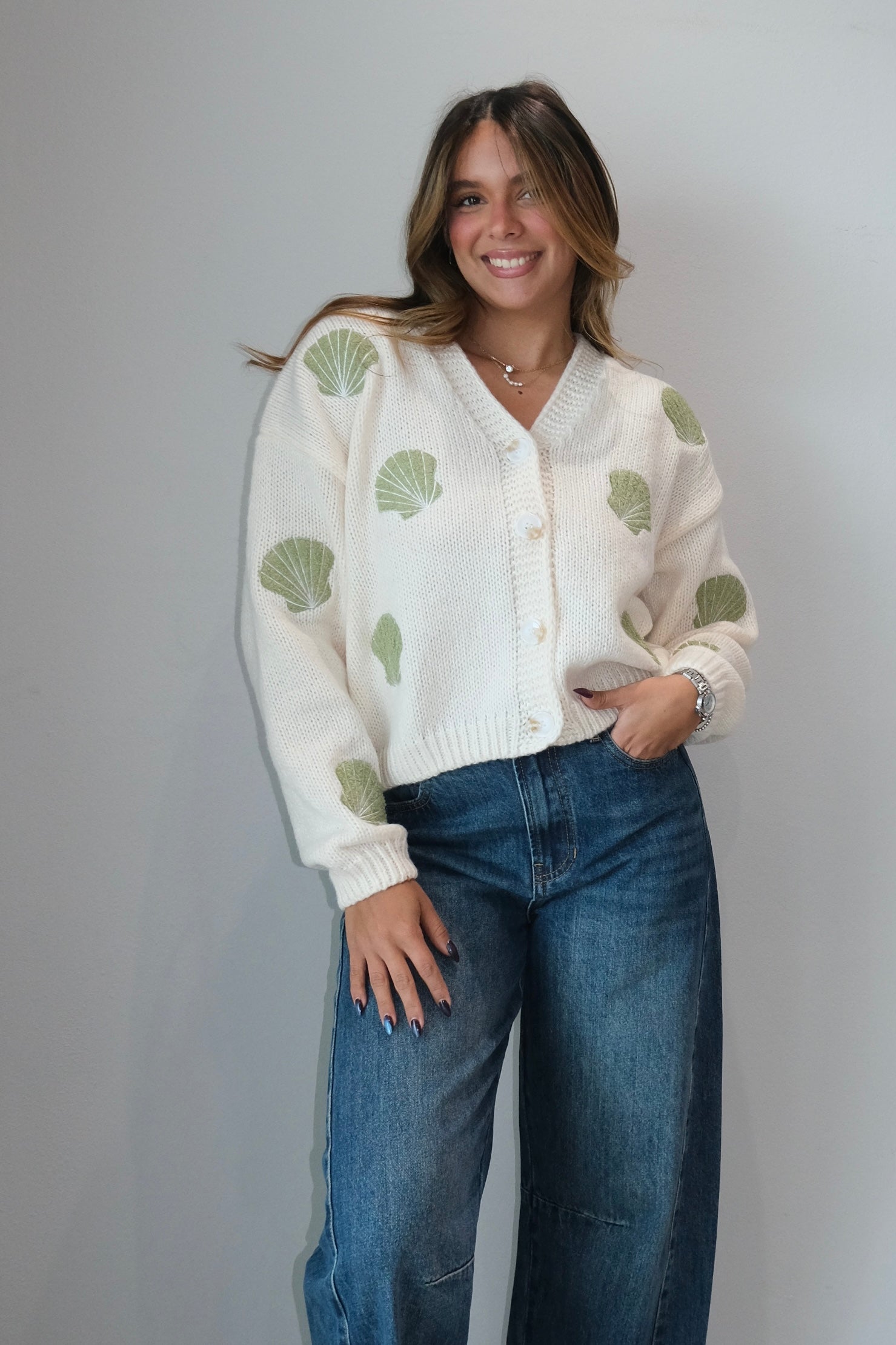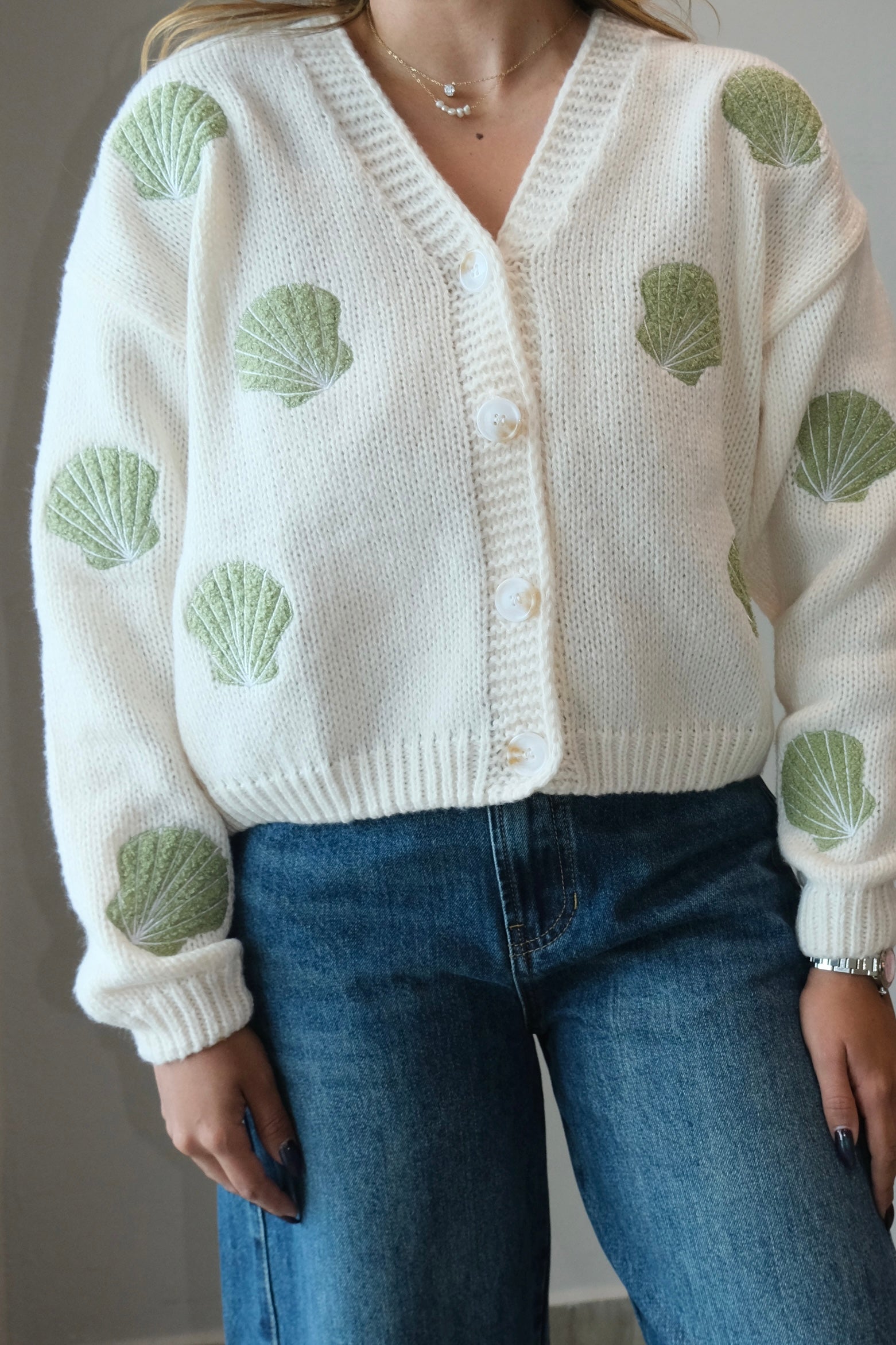 Shellie Sea Shell Embroidered Knit Cardigan Sweater