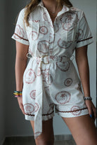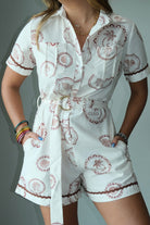 This Ada Button Down Hem Detailed Romper is a must-have for any fashion-forward individual. It runs true to size and the model is wearing a size small, but you can also opt for a size down for a more fitted look. With its impeccable fit, this romper is perfect for any occasion.