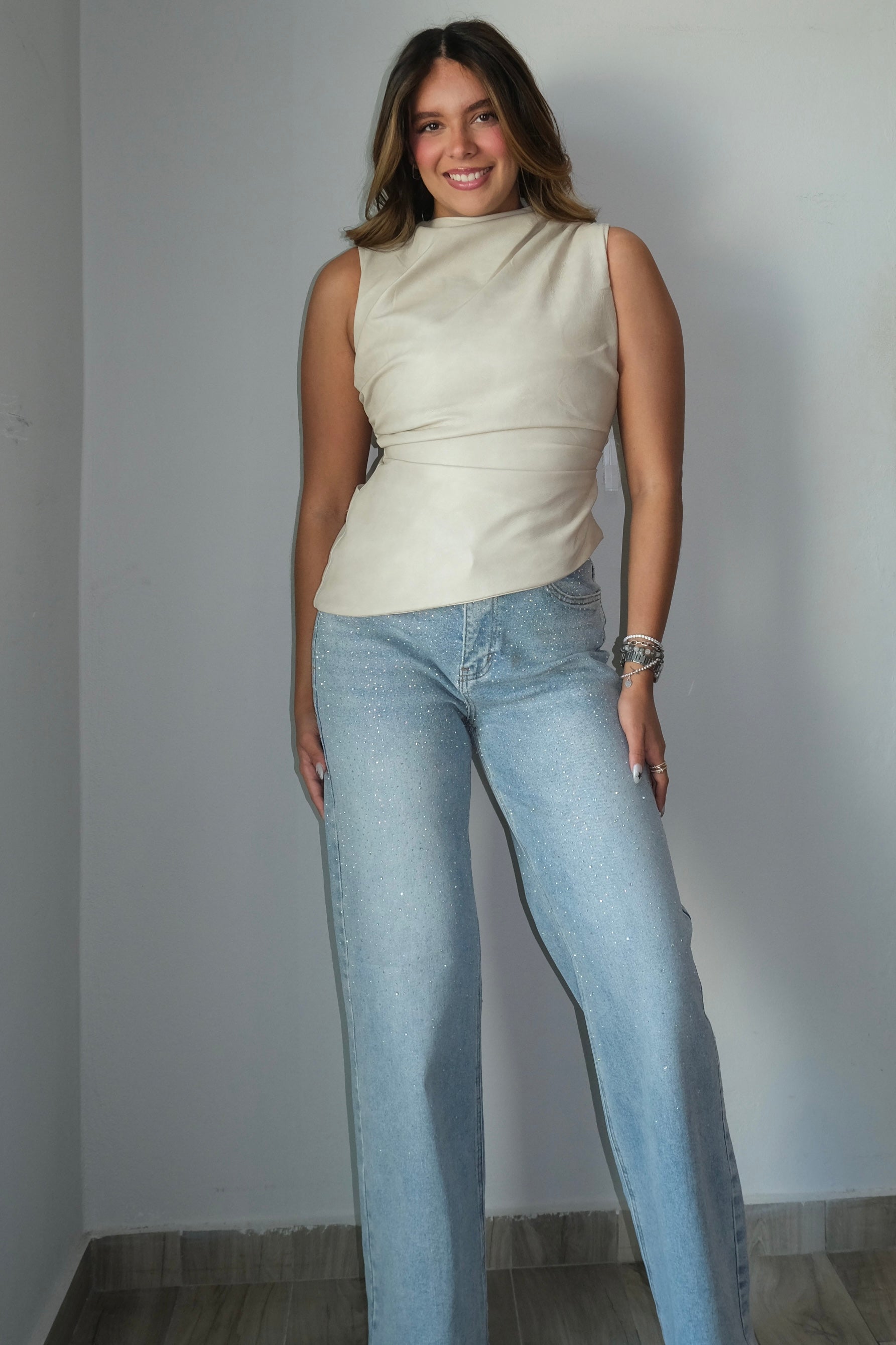 This Claire Asymmetrical Leather Top is designed to fit true to size, with a model wearing size small. If you are between sizes, it is recommended to size up for the best fit. Made with high-quality leather, this top is both stylish and comfortable.
