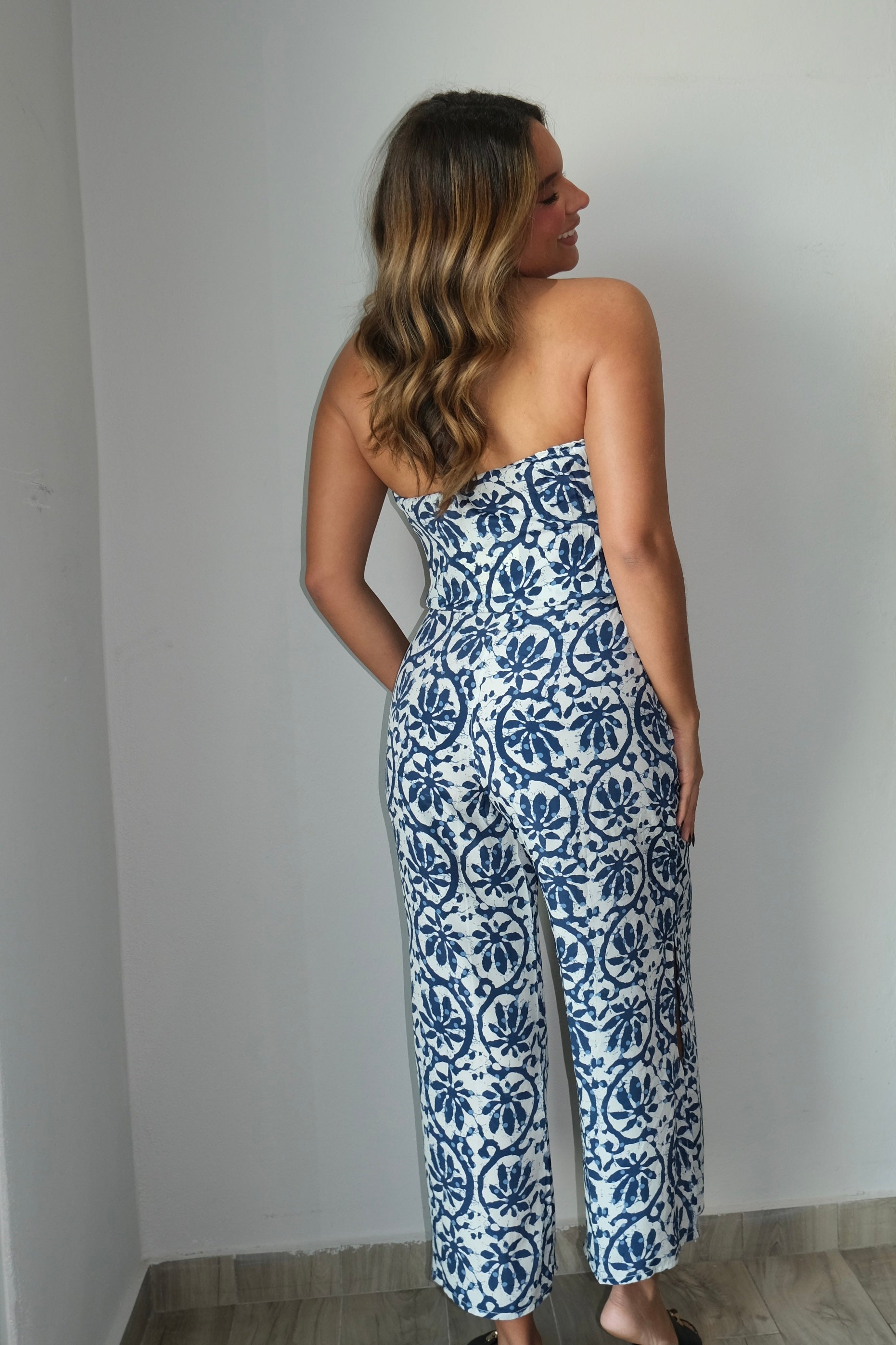 Nyla Side Slit Midi Jumpsuit Effortless style meets comfort in this versatile midi jumpsuit. Featuring a flattering side slit and an adjustable waist for a customized fit, this piece works for both casual outings and dressed-up occasions. The model wears a size small, and this jumpsuit runs true to size. Crafted with quality construction in India, it's a wardrobe essential that transitions seamlessly from day to night.