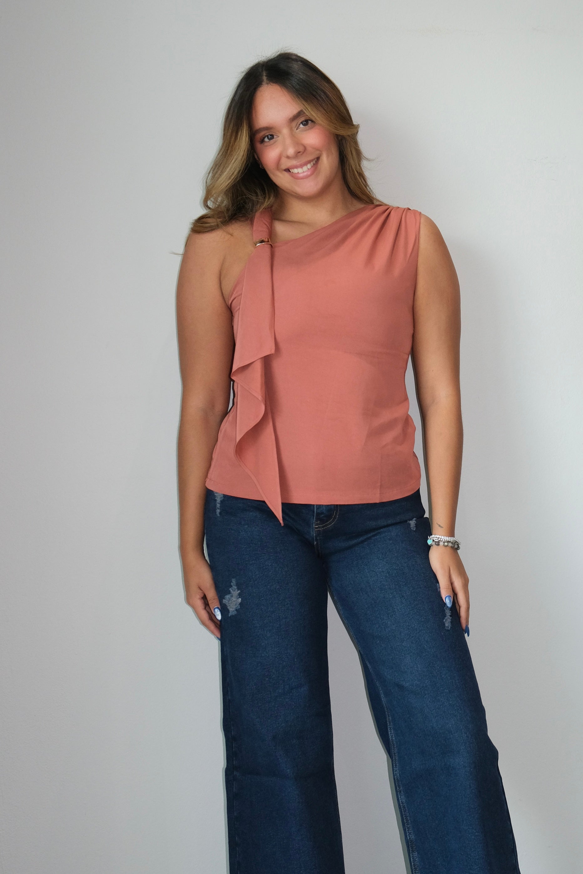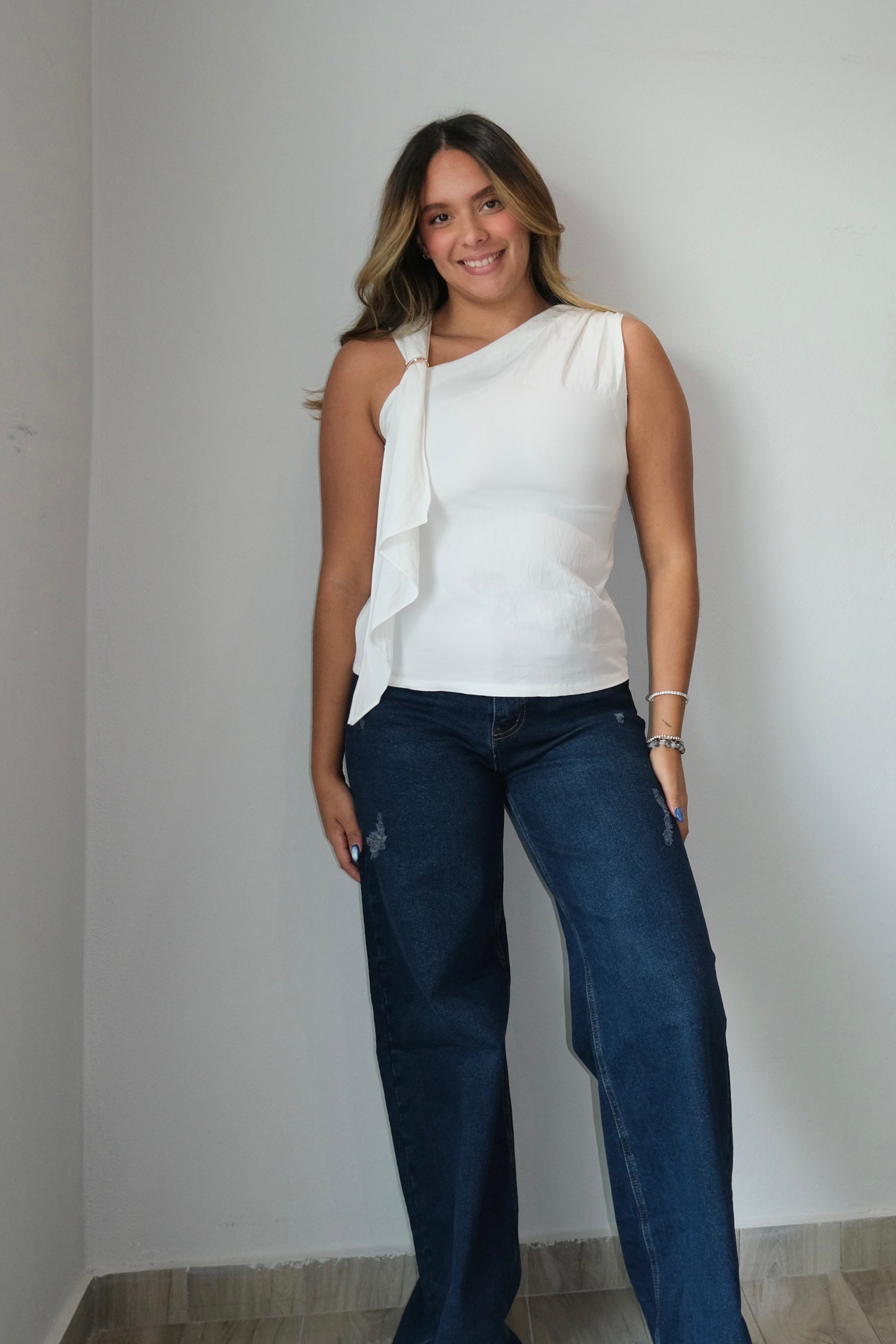 Amanda Asymmetrical One Shoulder Polka Dot Top