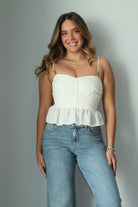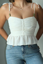 Pam Organza Beaded Top features delicate beading on lightweight organza fabric. Runs true to size with a fitted silhouette that doesn't stretch, so choose your regular size for the perfect fit. The model is wearing a small. Ideal for special occasions or elevated everyday wear, this top brings elegant detail to any outfit.