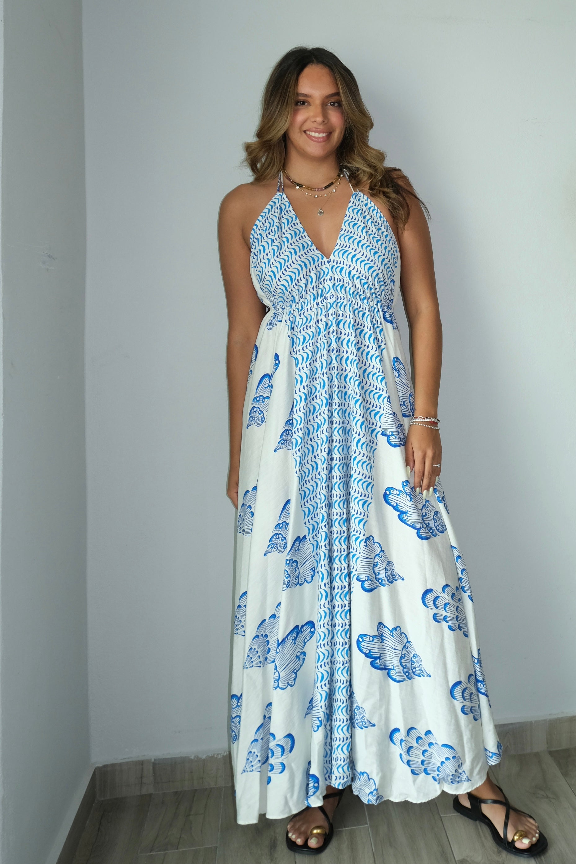 Effortlessly chic and flattering, the Martha Halter Backless Tie Dress features a bold halter neckline and open back design for a modern, daring look. Crafted from a luxurious blend of 90% rayon and 10% nylon, this dress drapes beautifully with a soft, fluid feel. Runs true to size—our model wears a small. If you prefer a more fitted silhouette, consider sizing down. Perfect for date nights, special occasions, or whenever you want to make a statement.