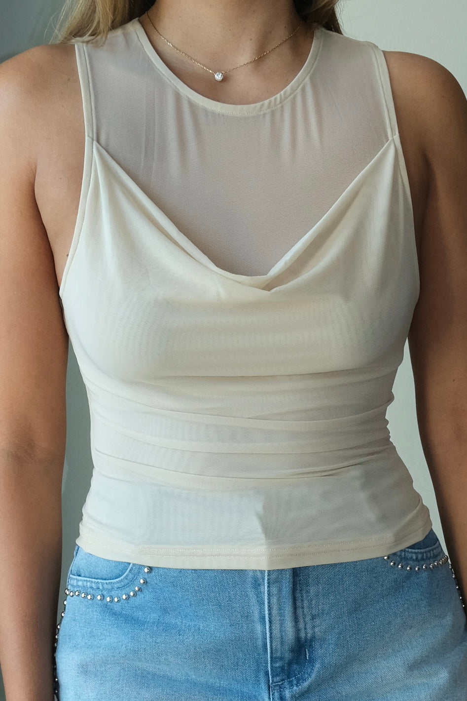Nicole Cowl Neck Mesh Top