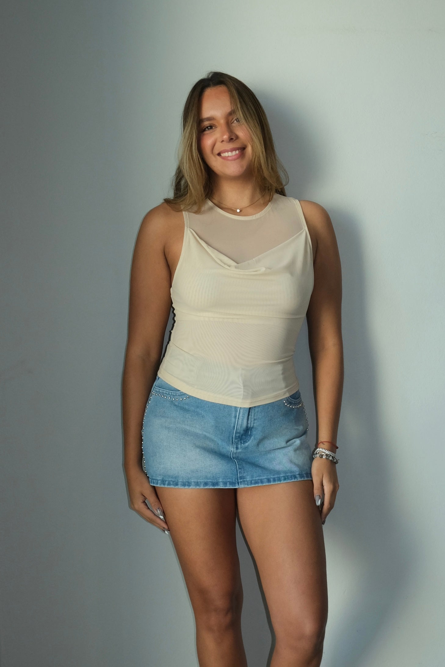 The Nicole Cowl Neck Mesh Top features a flattering cowl neckline in stretchy mesh fabric that moves with you. True to size with a relaxed fit, this piece offers comfort and style. The model wears a small. Perfect for layering or wearing solo, this top works for casual days and dressed-up occasions alike.