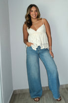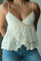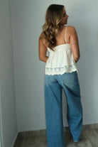 The Ailsa Lace Trim Babydoll Cami Top is a contemporary essential that blends comfort with refined detail. Crafted from a breathable cotton-dominant blend—65% cotton, 25% rayon, and 10% nylon—this piece offers a luxurious drape with just the right amount of stretch for all-day wear. The delicate lace trim adds an elegant touch, while the babydoll silhouette flatters effortlessly. Designed to run true to size, this versatile cami works beautifully layered under sheer pieces or worn solo for a polished look. Model pictured wears size small. Perfect for resort settings, casual layering, or elevated everyday styling.