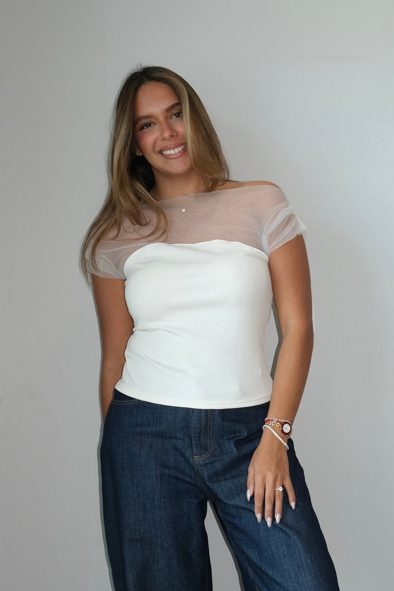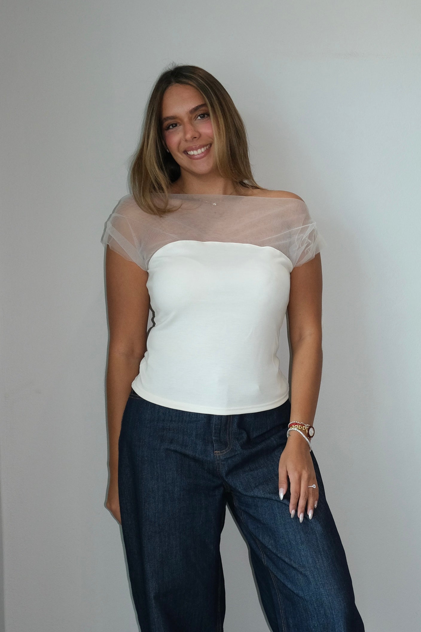 Alba Mesh & Ponti Drape Top