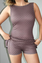 The Amara Polka Dot Romper brings playful style to your wardrobe with its classic polka dot design. Crafted from a breathable 82% polyester and 18% spandex blend, this romper offers stretch and comfort for all-day wear. The fitted silhouette flatters your figure while the flexible fabric moves with you. Runs true to size—our model is wearing a small. Perfect for casual days or dressed-up occasions.