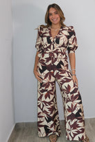 This Ayla Half Sleeve Ruffle Top & Pant Set combines comfort and style with a soft blend of 83% rayon and 17% nylon. Designed to run true to size, it features an elastic waistband for a flexible, flattering fit. The model is shown wearing a size small, reflecting the set’s accurate sizing and tailored silhouette. Perfect for effortless, sophisticated wear.