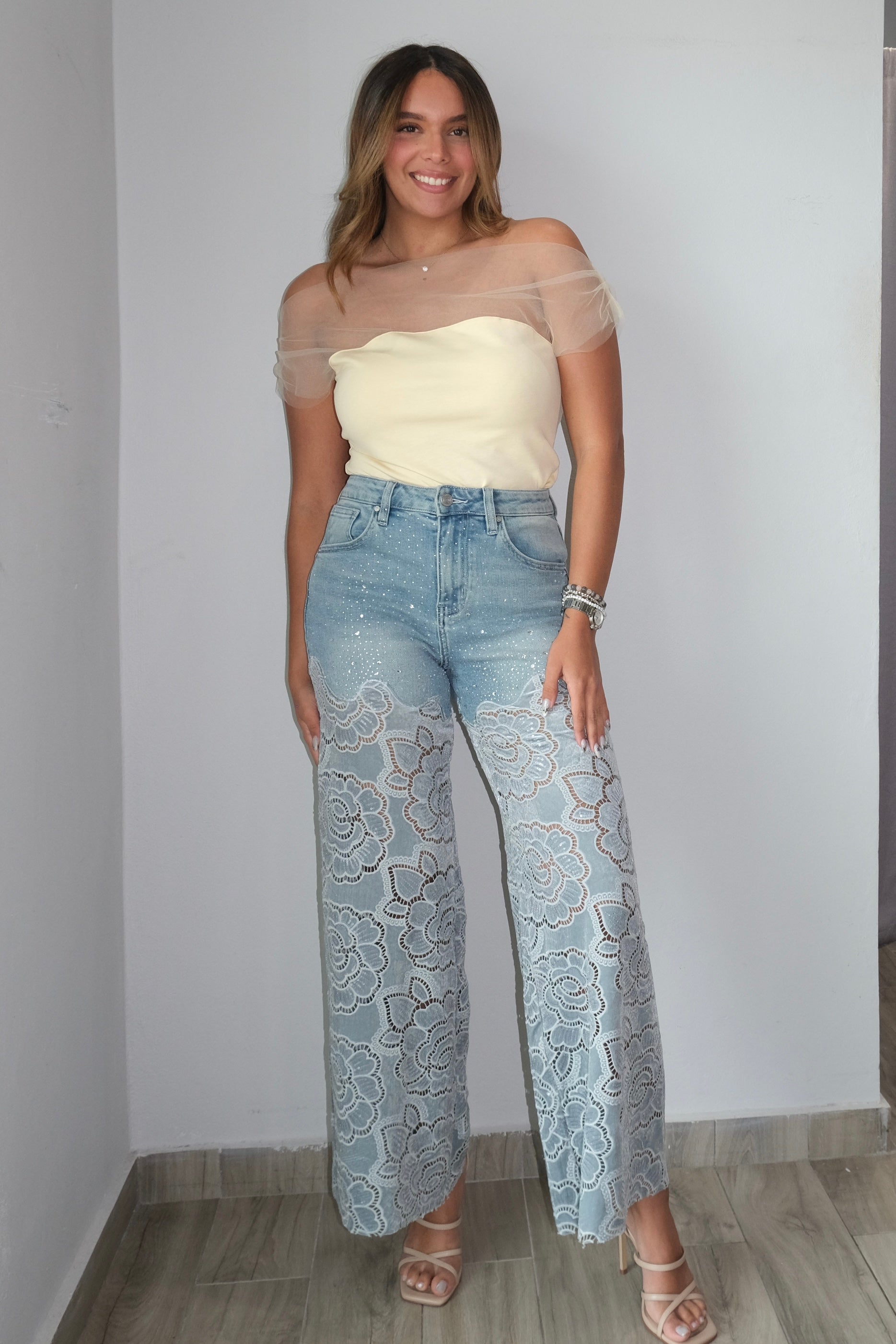 Celeste Stud Rhinestone Velvet Lace With Sequin Super Highrise Jeans