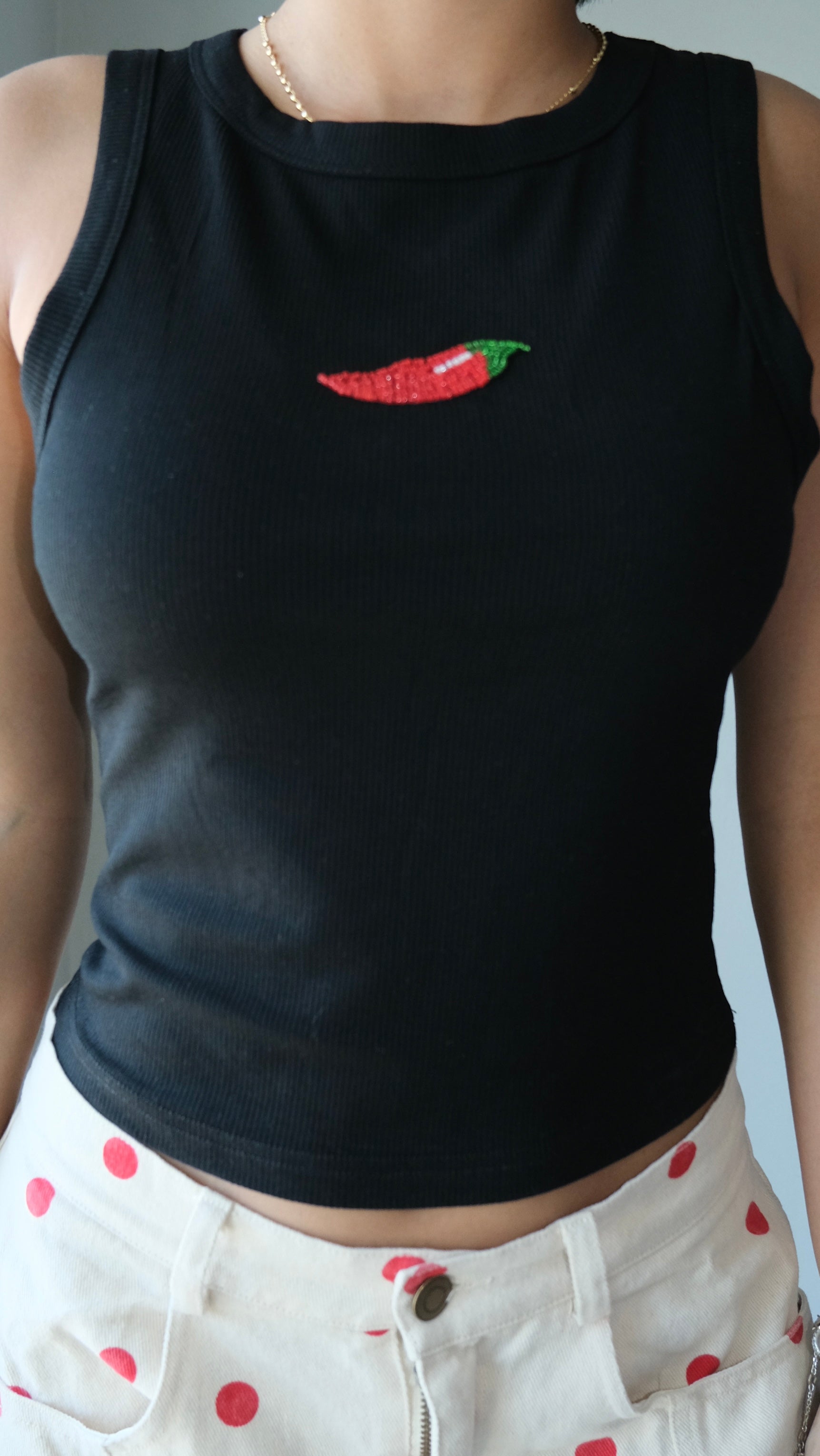 Chili Embroidered Beaded Tank Top