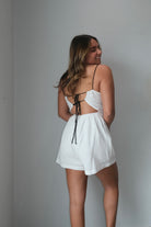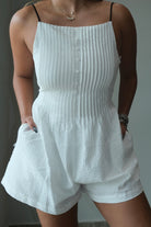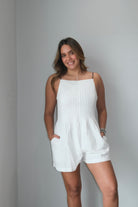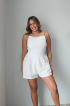 Effortlessly stylish and comfortable, the Evie Contrast Strap Romper is the perfect addition to your wardrobe. Made from 100% cotton, this romper runs true to size and is perfect for any occasion. The model is wearing a size small, showcasing the perfect fit and versatility of this must-have piece.