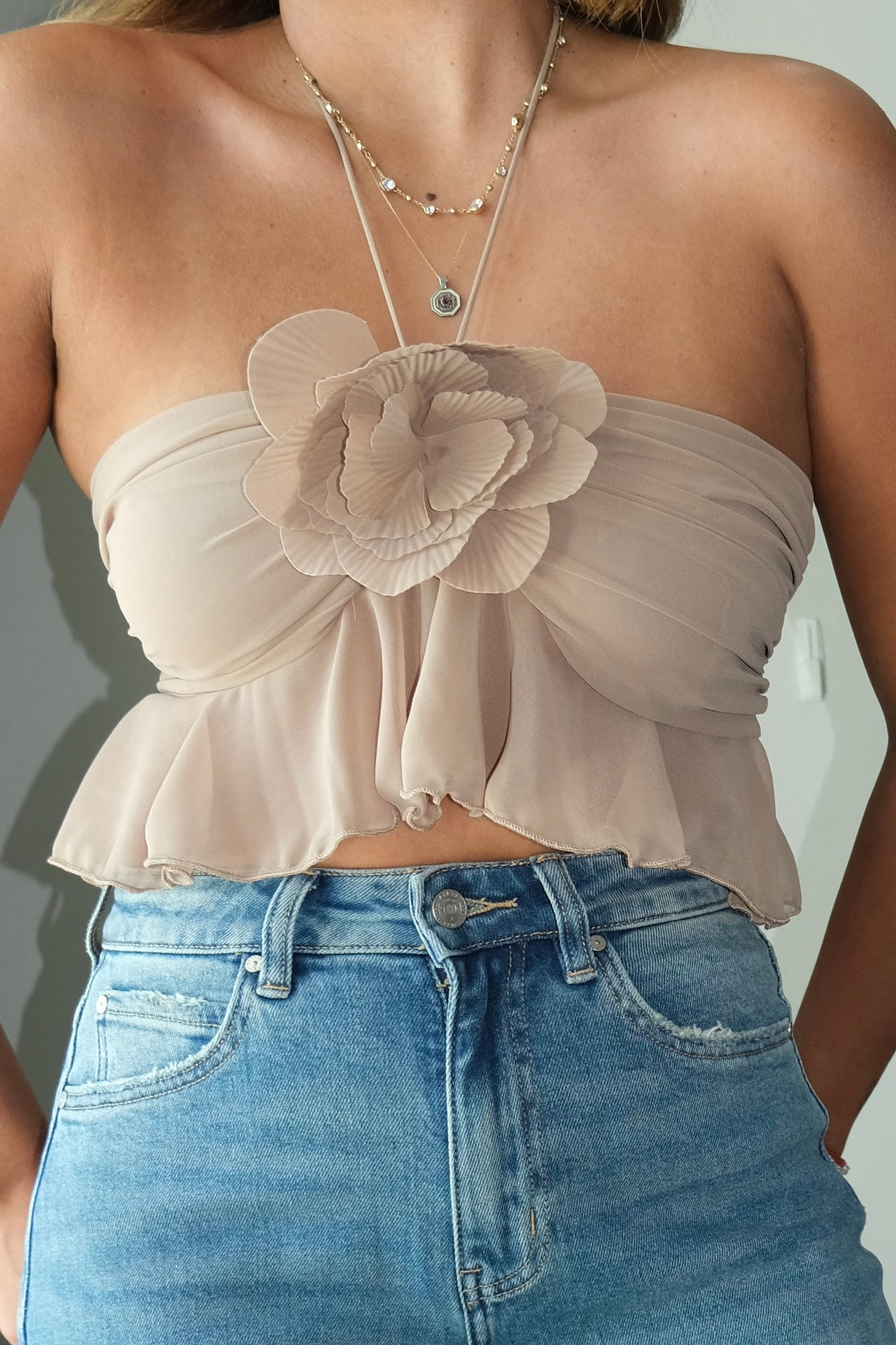 Flor Halter Ruffle Top