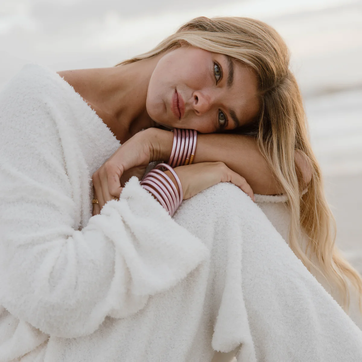 Ice Rose AWB® is for the woman who layers intention with elegance, who values the transformative power of subtlety, and who wears color as a companion for mindful living.Ice Rose pairs effortlessly with silvers, whites, and other pastel tones, creating a luminous, ethereal stack. Each bangle carries presence, memory, and intention—designed to accompany daily rituals, quiet mornings, or moments of reflection with understated grace.