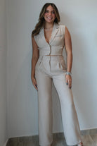 Ingrid V-Neck Snap Button Top & Pants Set This two-piece set features a classic v-neck top with convenient snap button closures paired with matching pants. Made from a comfortable blend of 96% polyester and 4% spandex, the fabric offers stretch and durability for everyday wear. The set runs true to size, with our model pictured wearing a small. Perfect for creating a coordinated, put-together look with minimal effort.