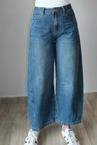 Isla Denim Relaxed Barrel Jeans offer a laid-back silhouette with a comfortable, roomy fit through the hips and thighs that tapers at the ankle. Made from non-stretch denim, these jeans provide structure and durability for everyday wear. They run true to size, so order your regular size for the perfect fit. The model is wearing a size small. Perfect for creating effortless, casual looks.