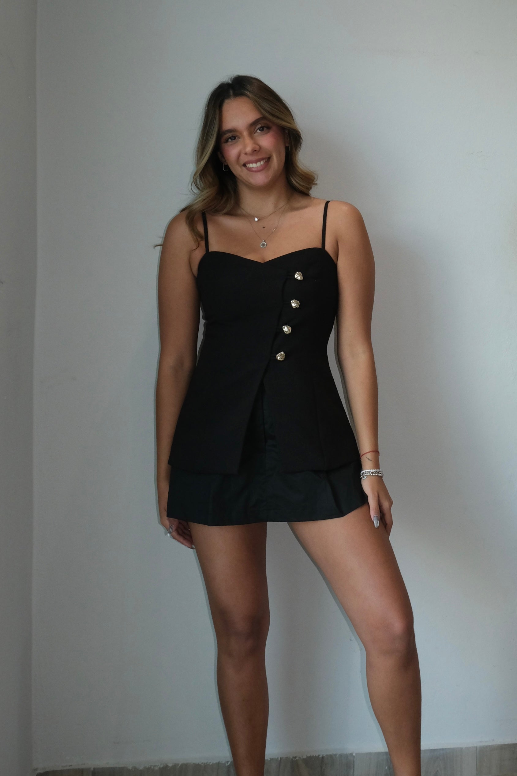 The Jewel Sweetheart Button Up Blouse is a structured piece that runs true to size with a flattering fit. Made from a blend of 74% polyester, 20% cotton, and 6% spandex, this blouse offers durability and maintains its shape without stretching. The 100% polyester lining provides smooth comfort against your skin. Perfect for layering or wearing solo, this classic button-up works for both casual and professional settings. Our model wears a size small.