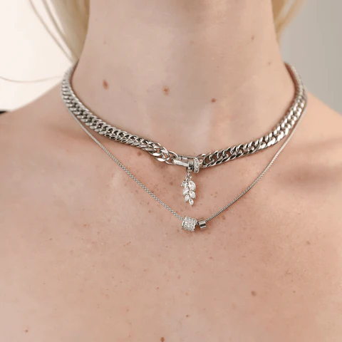 - Stainless steel Rhodium plated chain- 1mm Wide