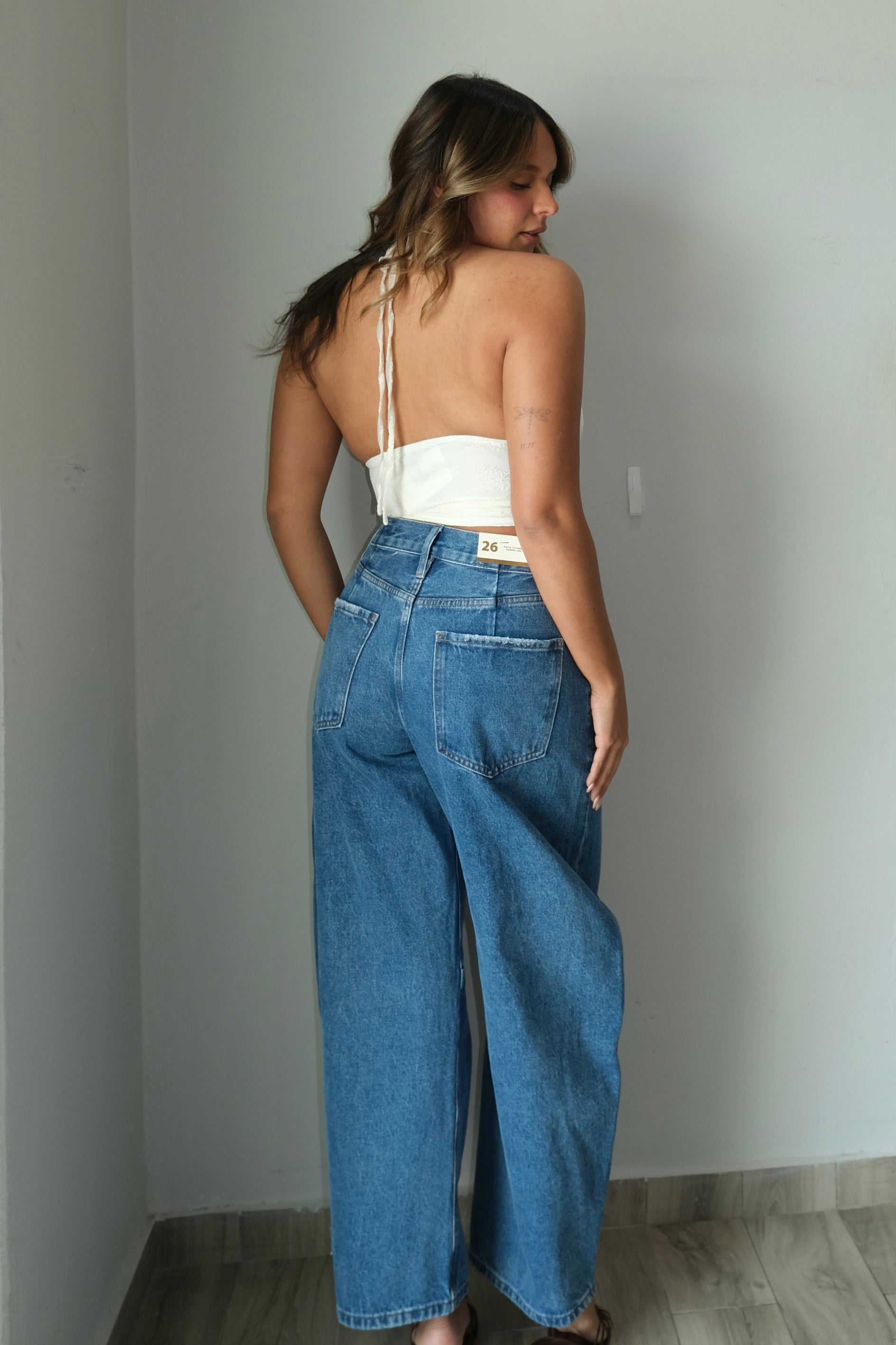 Kylie Tailored Barrel Jeans feature a super high rise cut that sits at the natural waist for a flattering, elongated silhouette. The rigid stretch fabric holds its shape throughout the day while providing minimal give for a structured, polished look. True to size fit with the model wearing a size 3. Perfect for creating sharp, tailored outfits with a modern barrel leg silhouette.