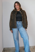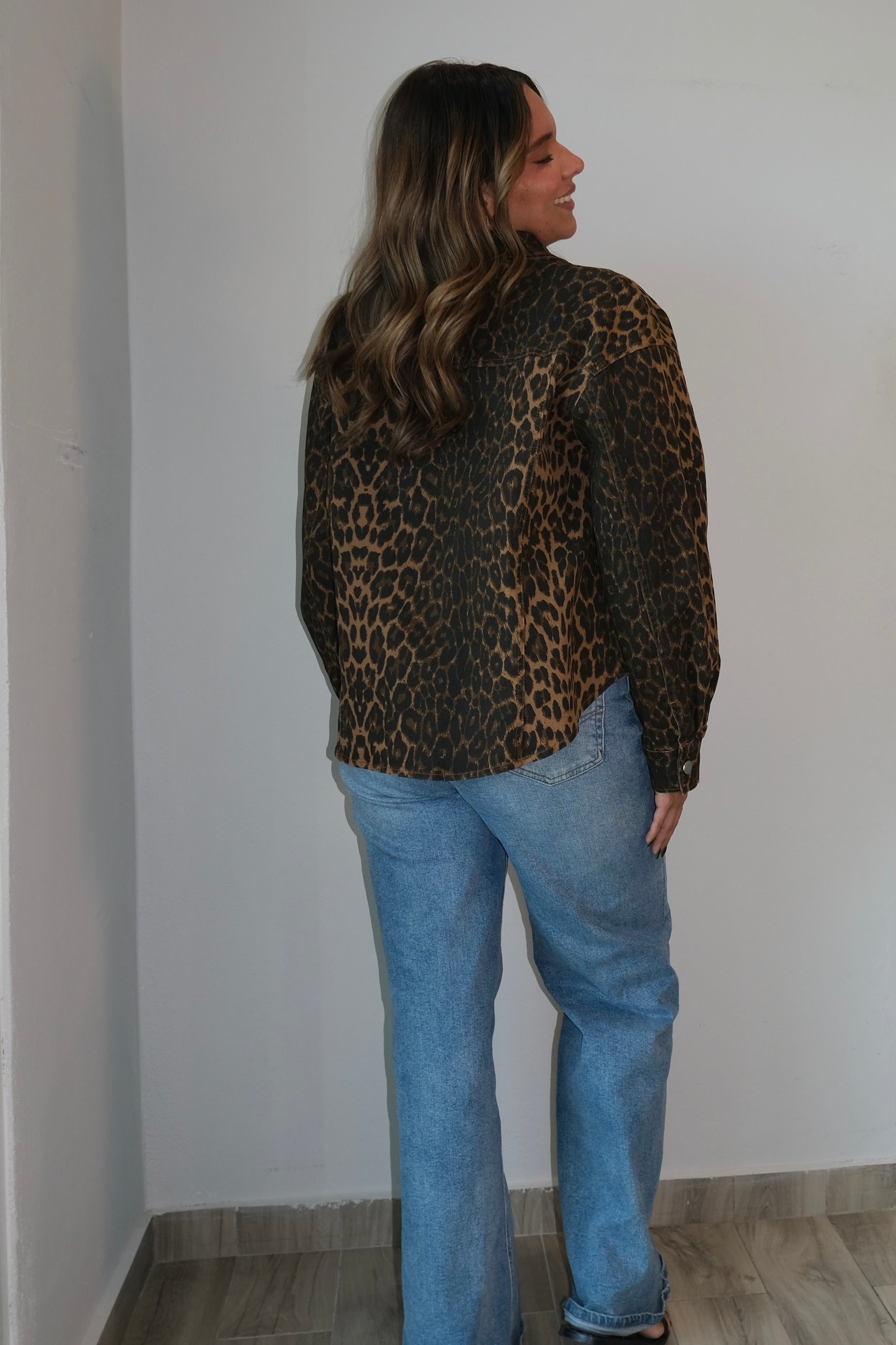 Stay stylish and cozy with our Leona Oversized Leopard Soft Denim Jacket. Made with high-quality denim, this jacket features an oversized fit for comfort and a trendy leopard print. The model is wearing a size small, but if you're in between sizes, we recommend sizing down for the perfect fit. Elevate your wardrobe with this must-have jacket.