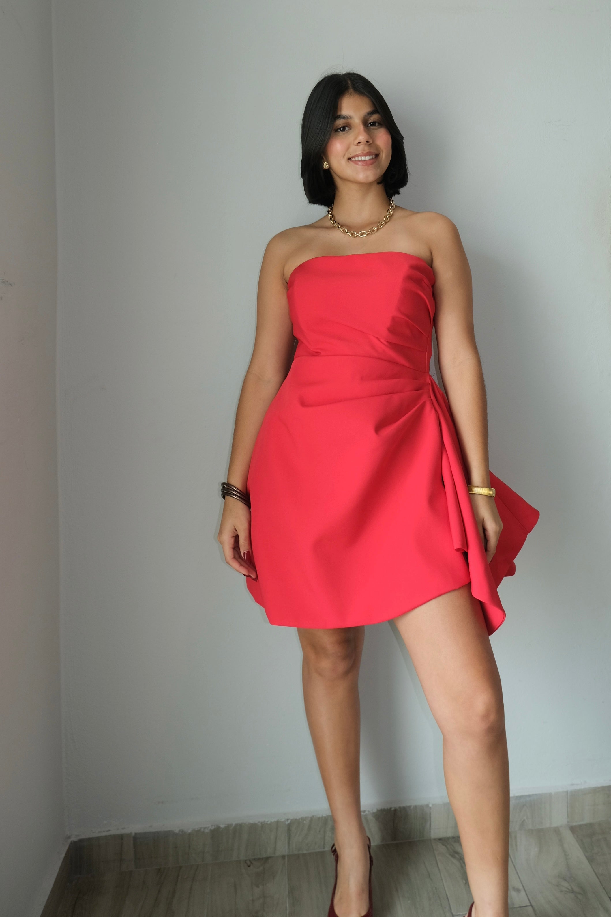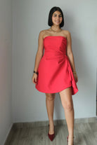 The Madeline Asymmetrical Flowy Dress features a graceful asymmetrical cut with a flowing silhouette. This dress runs true to size, so choose your regular size for the perfect fit. If you prefer a looser feel, size up. An invisible zipper on the back provides a clean, seamless look. Please note this dress does not stretch, so sizing is important for comfort. The model is wearing a size small.
