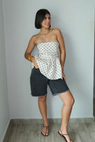 Matilda Acid Wash Bermuda Shorts deliver a bold, vintage-inspired look with a contemporary edge. Crafted from a 90% cotton, 10% polyester blend, these shorts offer structure and durability with minimal stretch for a crisp, tailored fit. True to size with a relaxed silhouette—our model wears a small. If you prefer a looser fit or are between sizes, we recommend sizing up. Perfect for casual styling or dressed up with a blazer for effortless versatility.