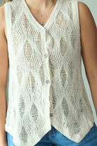 Milana Knit Crochet Embroidered Vest Top Elevate your wardrobe with this charming vest top featuring delicate crochet embroidery details. Crafted from a soft cotton-blend fabric with just a touch of nylon for durability, this piece offers comfort and style in one. The intricate embroidered design adds a feminine, handcrafted appeal perfect for layering or wearing solo. Available in one size, it's an easy addition to any casual or dressed-up look.