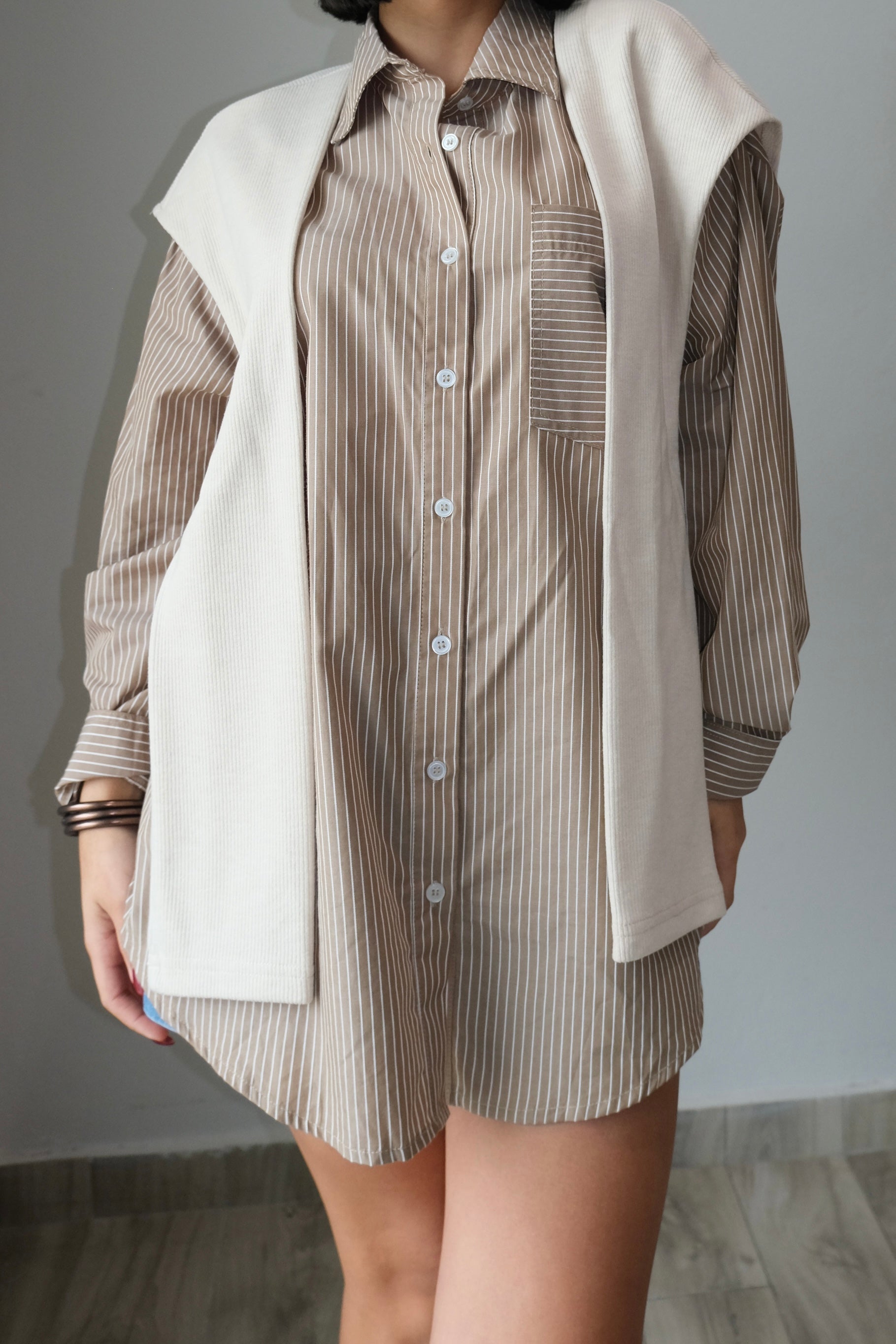 The Norah Stripped Button Up Blouse runs true to size and features a relaxed, oversize fit that works beautifully as-is or sized down for a more tailored silhouette. Our model wears a small, showcasing how the piece drapes with generous proportions. Perfect for layering or wearing solo, this striped button-up adapts to your style preference. Choose your size based on how you like your fit go true to size for that effortless oversized look, or size down for a more fitted feel.