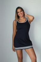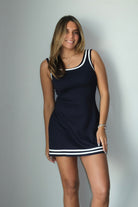 The Palmer Scuba Contrast Trim Romper is designed for a true fit, accommodating standard sizing. Made from a blend of 49% polyester, 45% rayon, and 6% spandex, it offers stretch and comfort. The contrast material, consisting of 95% polyester and 5% spandex, enhances durability while maintaining a sleek appearance. Model is wearing size small