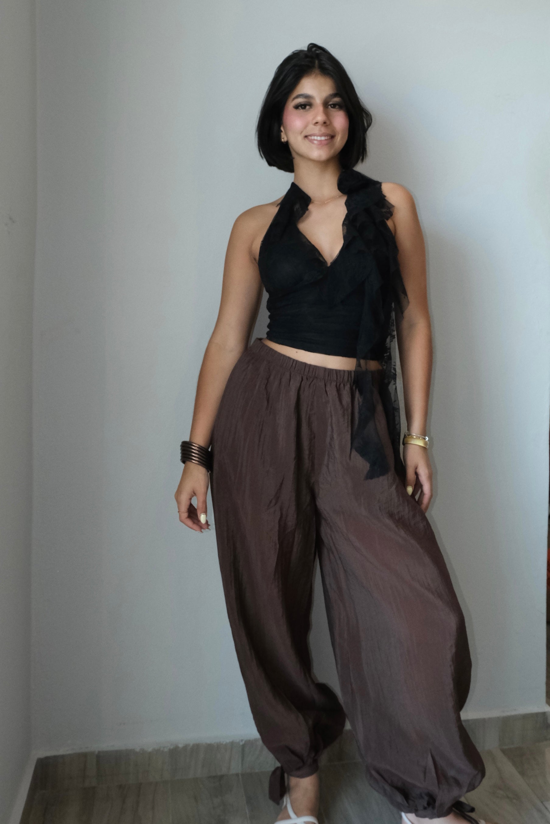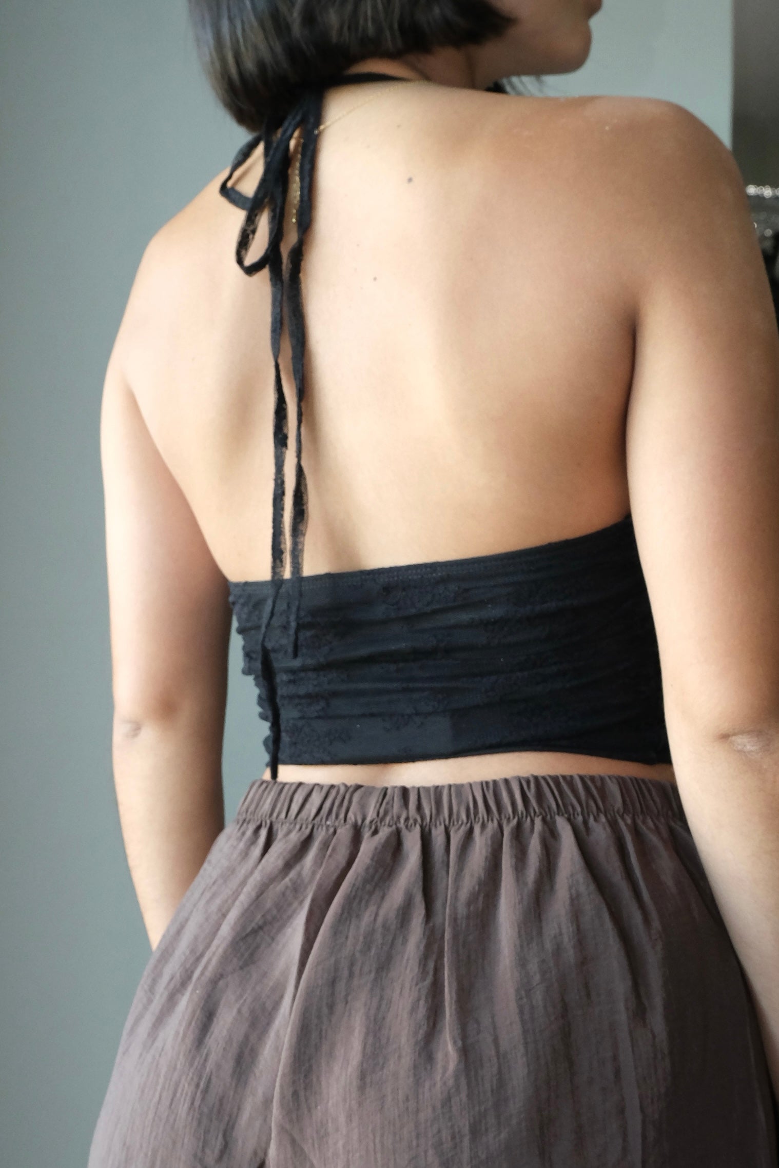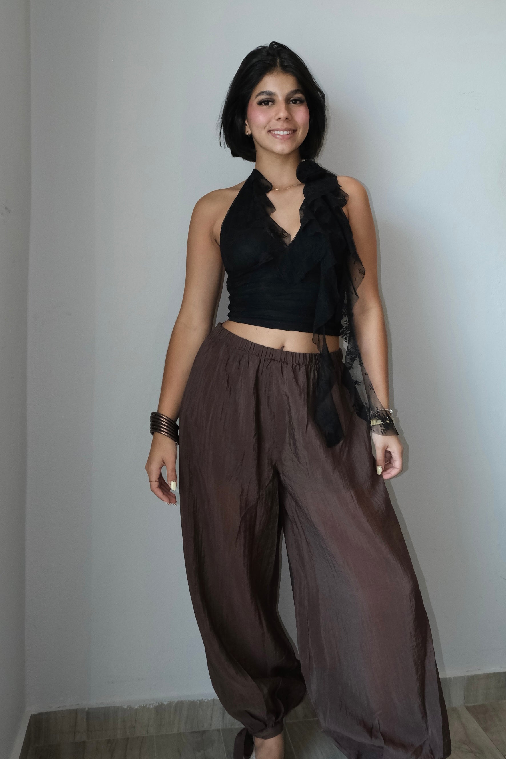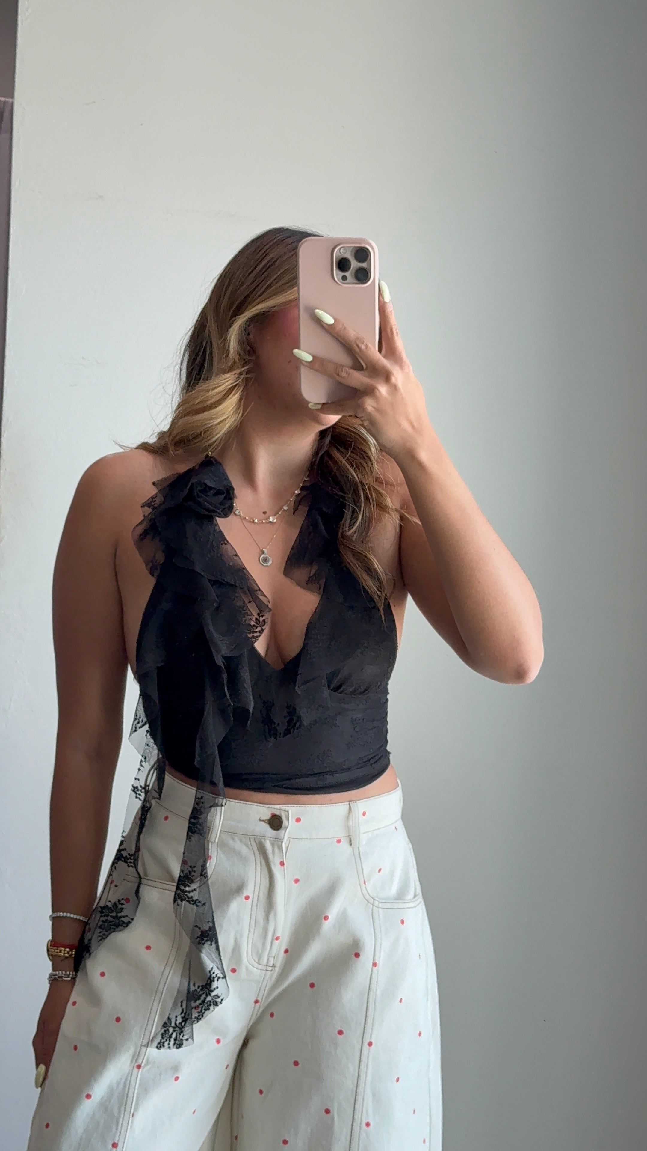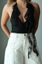 Rocio Rose Lace Mesh Ruffled Halter Top