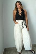 The Rocio Rose Lace Mesh Ruffled Halter Top combines delicate lace detailing with a flattering mesh design. The ruffled halter neckline creates a feminine silhouette perfect for any occasion. Made from a durable blend of 85% nylon and 15% spandex shell with a 100% polyester lining, this top offers both comfort and stretch. Runs true to size. Model pictured wears a small.