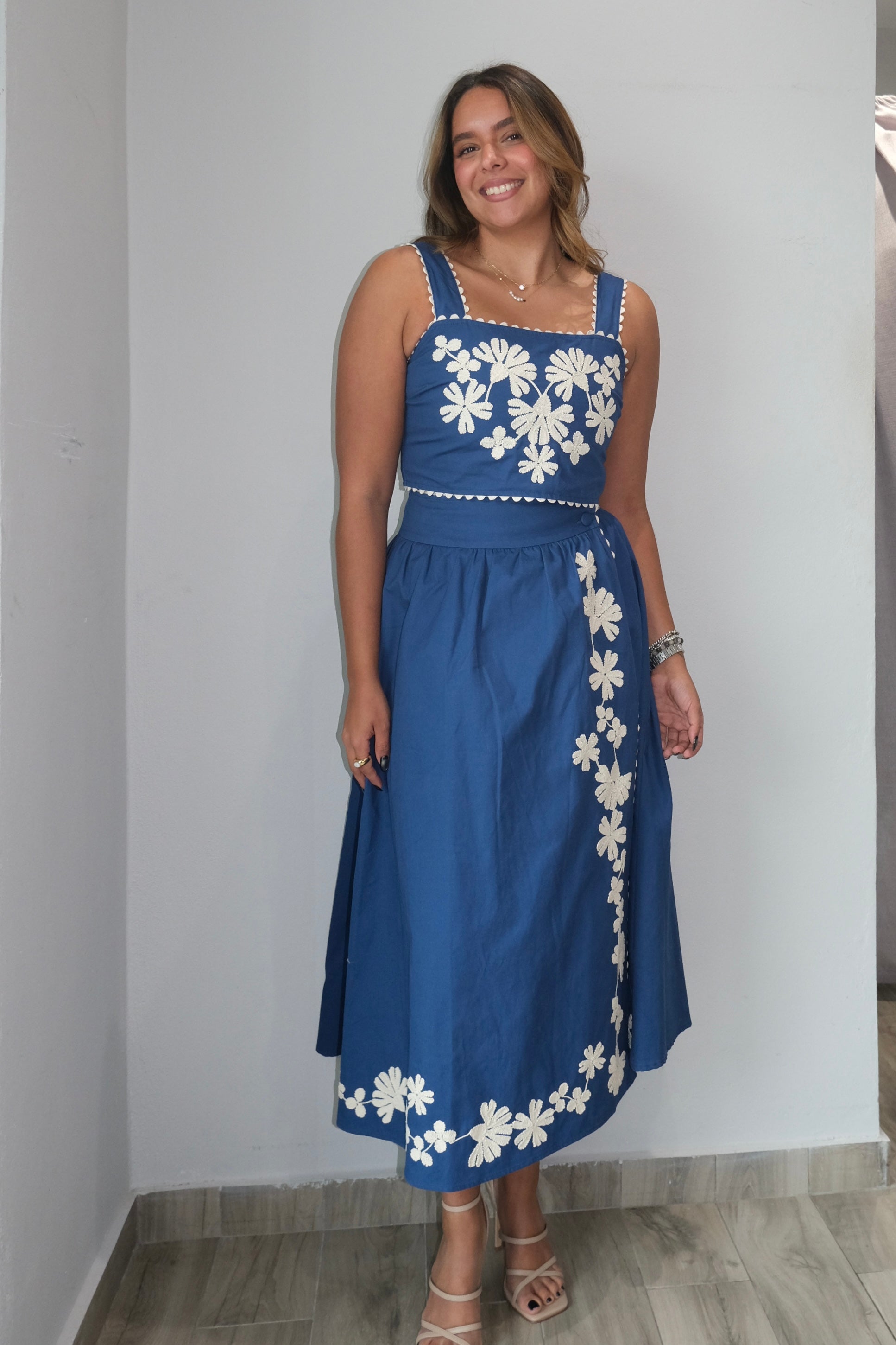 This beautiful Rosa Embroidered Top & Skirt Set boasts a wrap-style skirt and elegant embroidery. It runs true to size and does not stretch, ensuring a perfect fit for all-day comfort. For those in between sizes, we recommend sizing up for the best fit. Embrace effortless chic with this must-have set.