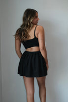 The Sienna Soft Scuba Back Cut Out Romper features a flattering silhouette with a striking open back design. Made from a comfortable blend of polyester, rayon, and spandex, this piece offers a soft scuba fabric that moves with you. The lining is crafted from polyester and spandex for added comfort and durability. Runs true to size. Model pictured is wearing a small.