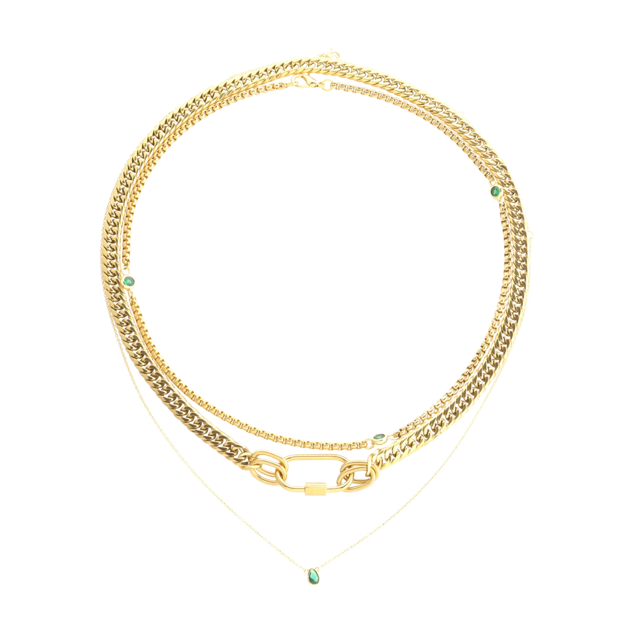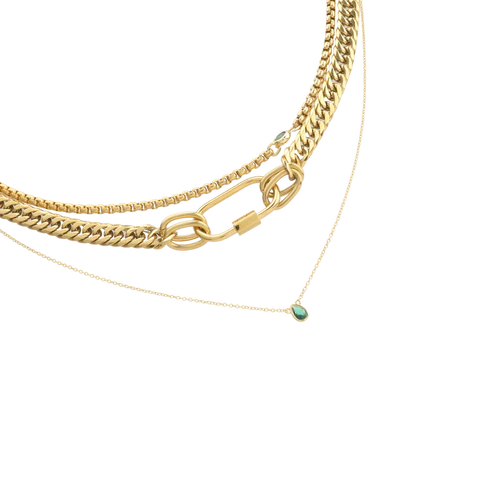 SLEEK CARABINER EMERALD LAYERED NECKLACE SET
