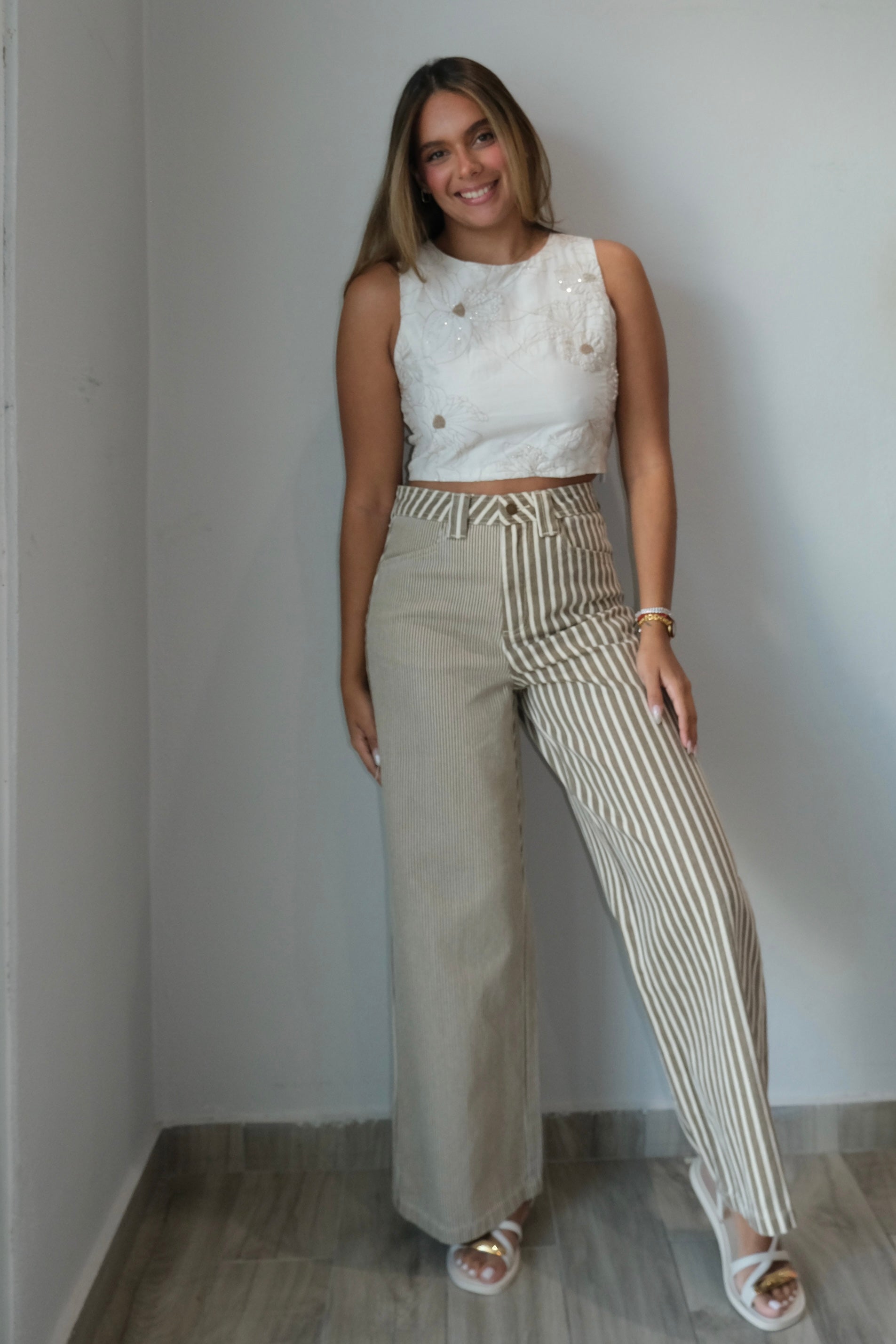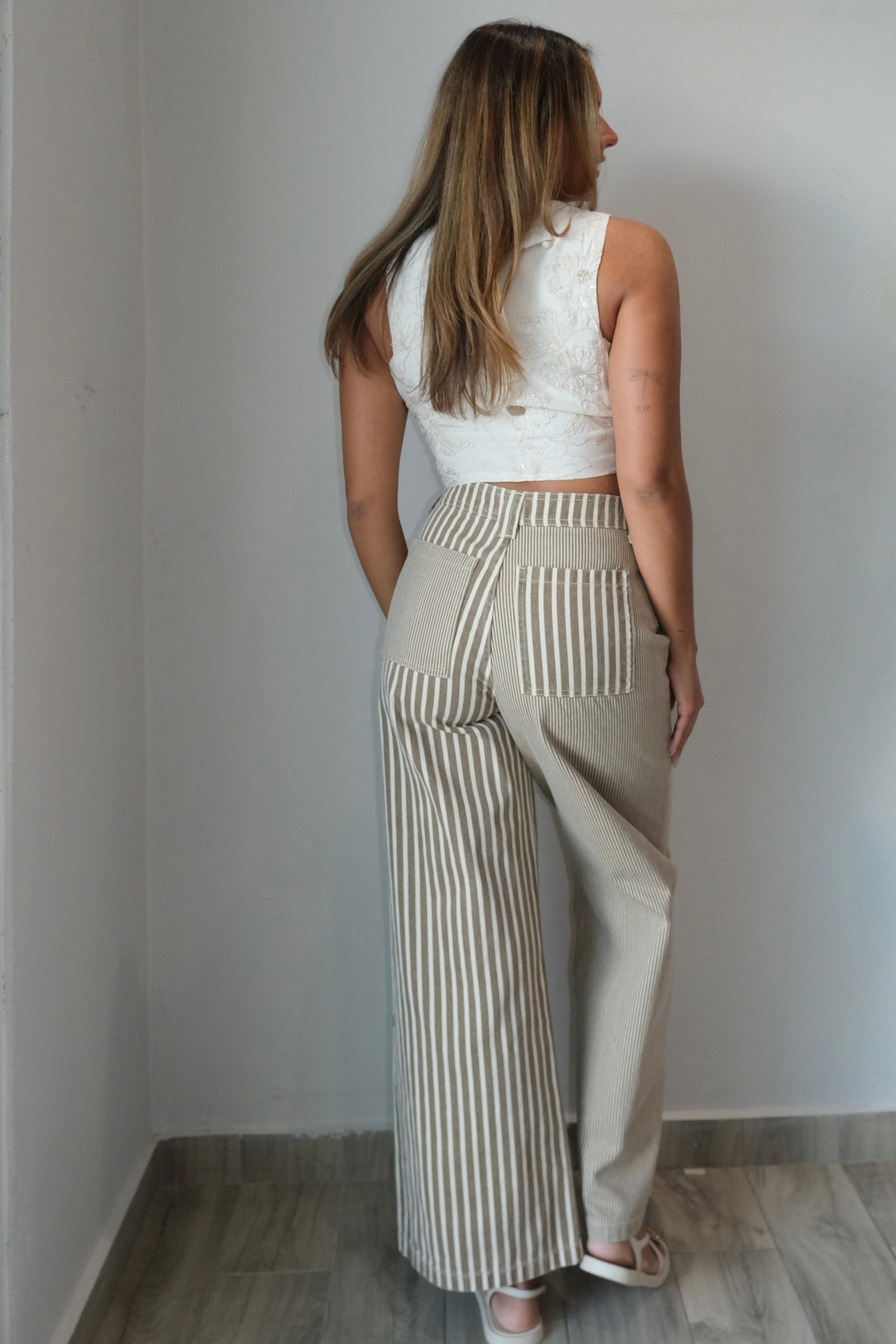 These Sol Striped Down Pants are made from 100% cotton and run true to size. Perfect for any occasion, the model is seen here wearing a size small. With its comfortable fit and quality fabric, you'll love these pants for any and every activity.